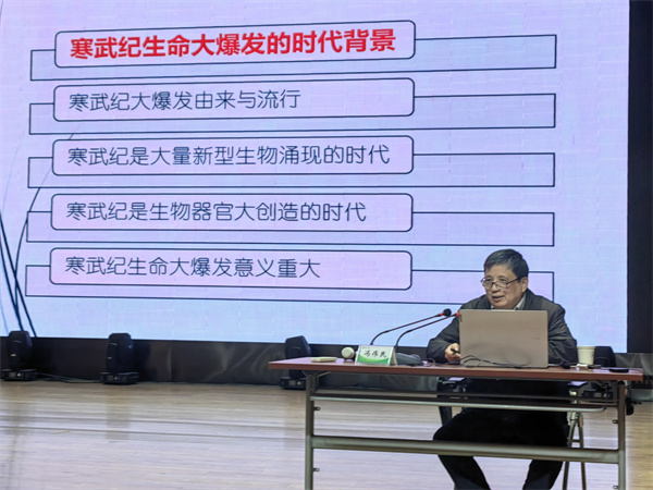 讲座过程中,他用眼神温柔地注视着学生,不断耐心地给我们区分各种概念,还向我们传递着科学精神,告诫我们当代学生要努力才能得到成果。严肃的生命话题之余,他也会讲一些有趣的小故事。此外,在讲到中国对寒武纪大爆发提供的证据最丰富时,他充满自豪感。如此种种,将学生们的思想引入高地。使同学们的眼中无不迸发着一种智慧探索之火。