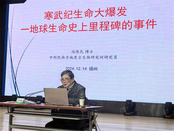 为拓宽学生眼界,丰富学生知识。扬州中学教育集团树人学校南门街校区举办了主题为“弘扬科学精神,铸魂聚才新时代”的三年百场宣讲活动。中科院南京地质古生物研究所二级研究员冯伟明以“寒武纪生命大爆发,地球生命史上的里程碑事件”为主题给同学们带来了一场别开生面的科普讲座。