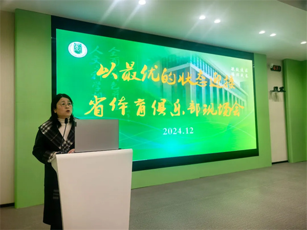 树人学校作为市直唯一迎接省体育俱乐部的学校,深感荣幸。树人学校南门街校区校长姜亚芹首先强调了学校对省体育俱乐部即将到来的重视。姜校长向全体教师再次解读了学校以下三个方面的做法:1.每天一节体育课。树人学校的体育课程包含每周3节体育课,1节体能训练课,1节体育校本课。每天都有一节体育大课间。冬天为跑操形式,其他季节为啦啦操、街舞等形式。2.近视防控。树人学校对学生的近视防控明确责任,落实规定。积极相应并落实“六个一”的近视防控要求。即“每班张贴一张标准对数视力表、每天上下午各做一次眼保健操、每月开展一次班级内视力自测、每季度开展一次近视防控科普宣教活动、每学期初开展一次专题部署、每年跟踪对比分析一次全校学生视力状况。”3.树人young体育俱乐部。自树人学校初中部Young体育俱乐部成立起,树人体育项目在省市乃至全国大赛中屡获佳绩。
