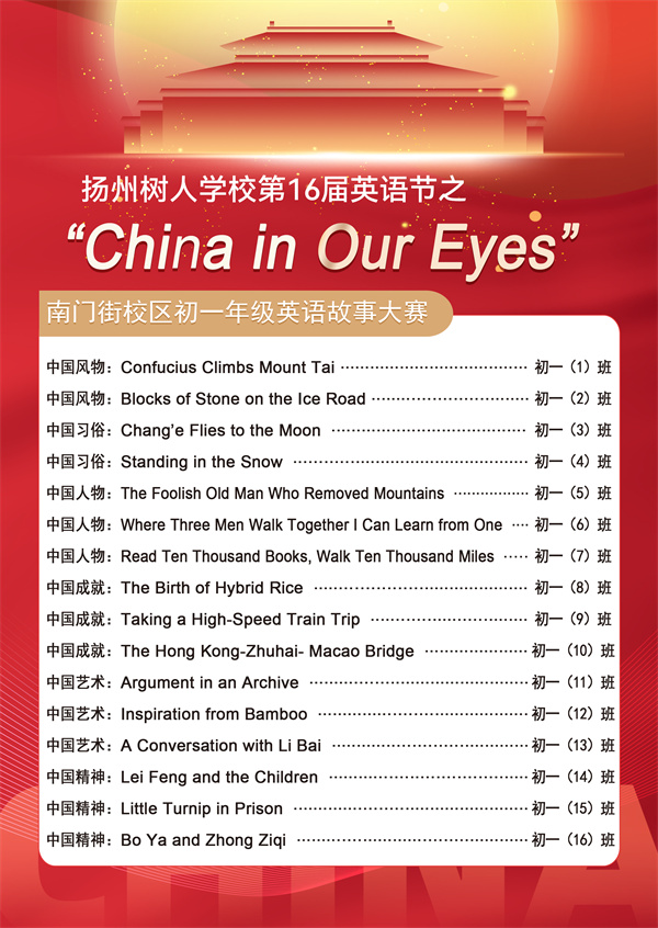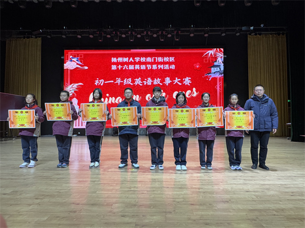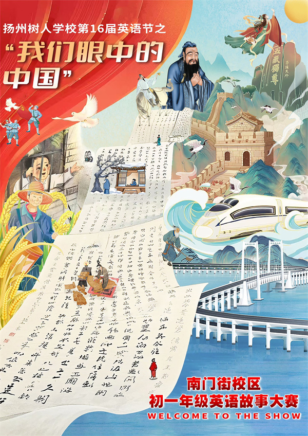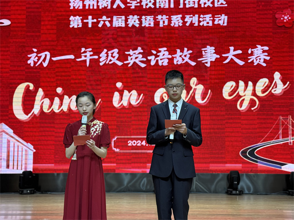 12月23日,扬州树人学校南门街校区成功举办了第十六届英语节,备受期待的“我们眼中的中国”英语故事大赛成为本次活动的亮点。此次比赛充分展示了初一年级学生的才华、创意以及对中国文化的自豪感,他们以生动的讲述与表演呈现了中国丰富的文化遗产与辉煌成就。