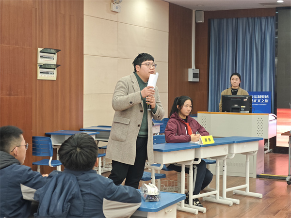12月27日,我校南门街校区举办了一场别开生面的模拟法庭活动,将法治课堂搬到了“法庭”现场,让同学们亲身体验法律的威严与公正。本次活动旨在通过模拟真实的法庭审判过程,增强学生们的法治观念,提升他们的法律素养,让法治的种子在青少年心中生根发芽。