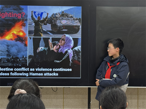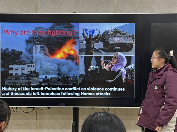 活动伊始,社团成员们先通过简要的背景介绍了解了巴以冲突的历史根源、各方立场及当前局势。随后,学生们以不同国家代表的身份,围绕巴以冲突的解决方案展开了激烈的辩论。每位学生都充满热情地阐述了自己代表国的观点,并根据国际法、历史背景以及各自国家的外交政策进行论证。