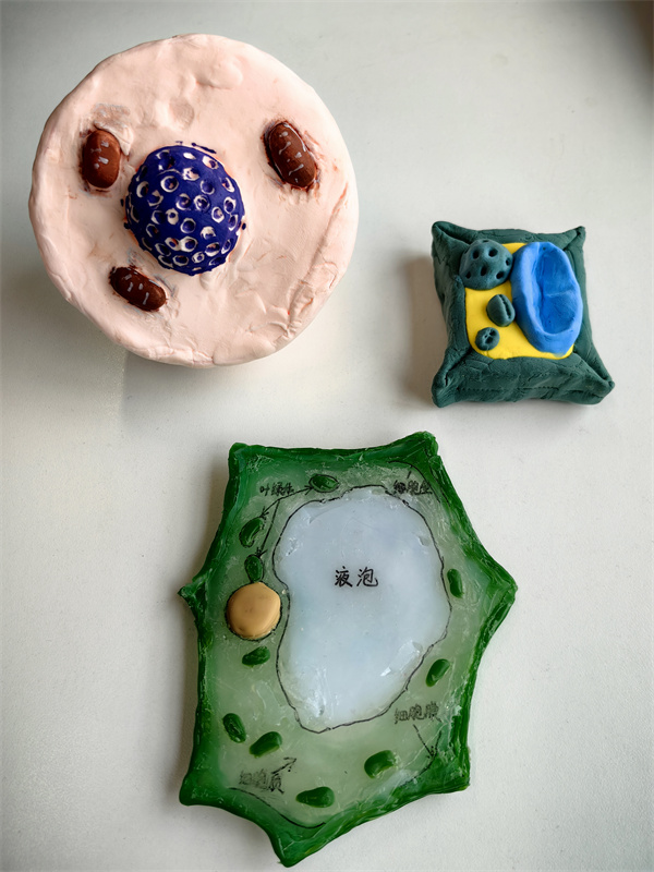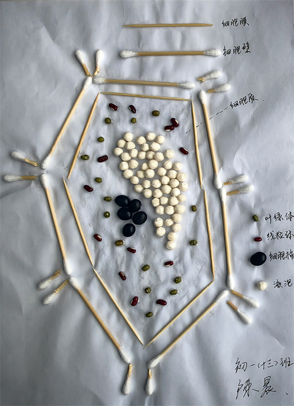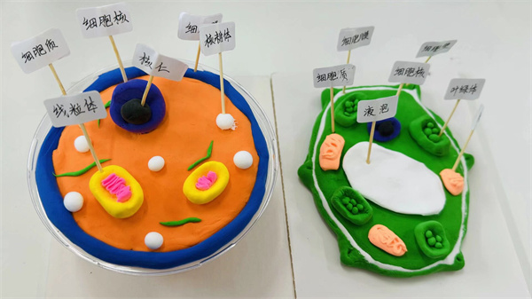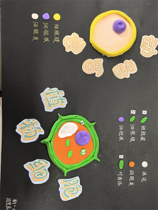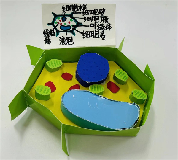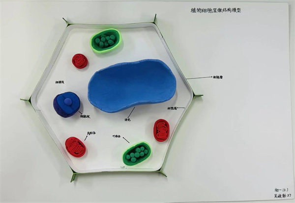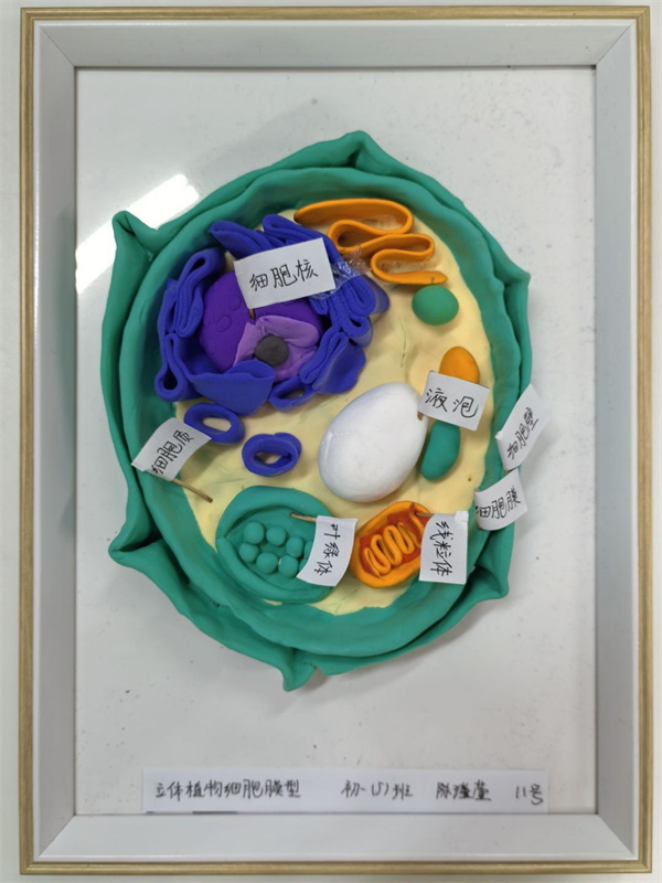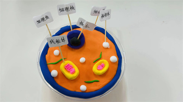 初一年级以"探寻生命奥秘"为主题,提供两项跨学科作业选择。学生既可利用废旧材料制作动植物细胞立体模型,通过捏塑、拼接理解细胞结构;也可打造微型水族箱,在饲养金鱼的全程观察中培养生态意识。在本次活动中,七年级学生利用身边简易材料,综合运用了生物学、数学、美术、物理等学科的概念与方法,高质量的完成了细胞模型和水族箱的制作。