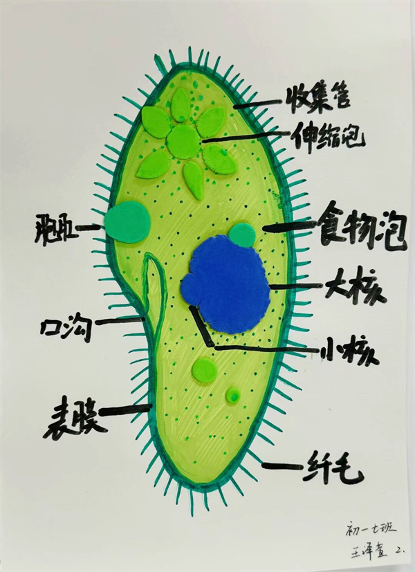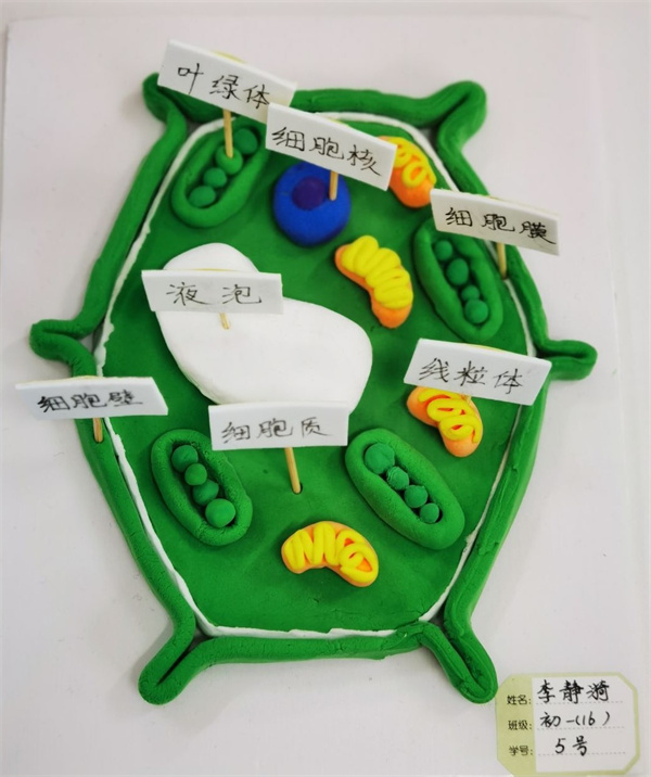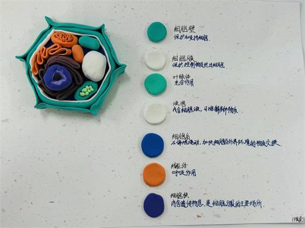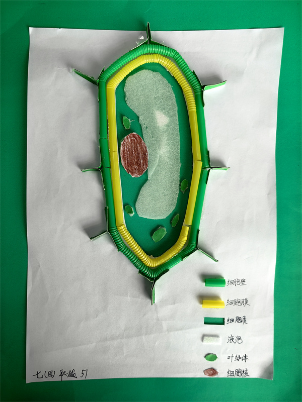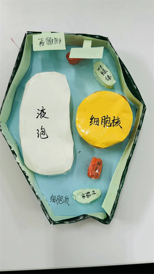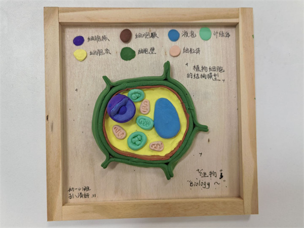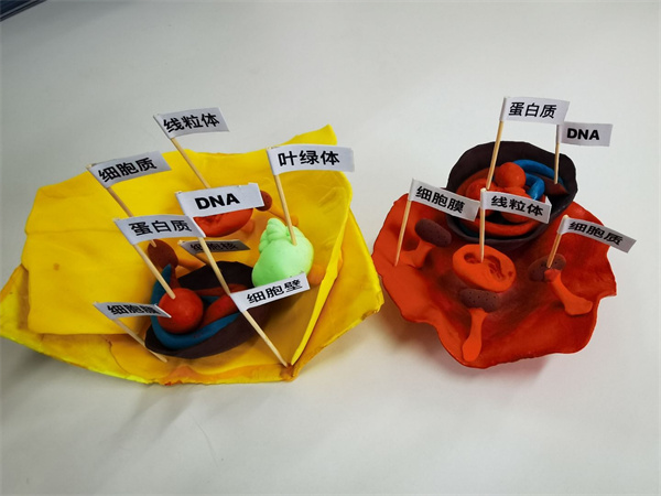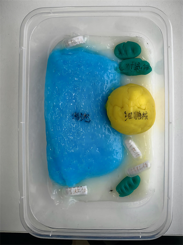 初一年级以"探寻生命奥秘"为主题,提供两项跨学科作业选择。学生既可利用废旧材料制作动植物细胞立体模型,通过捏塑、拼接理解细胞结构;也可打造微型水族箱,在饲养金鱼的全程观察中培养生态意识。在本次活动中,七年级学生利用身边简易材料,综合运用了生物学、数学、美术、物理等学科的概念与方法,高质量的完成了细胞模型和水族箱的制作。