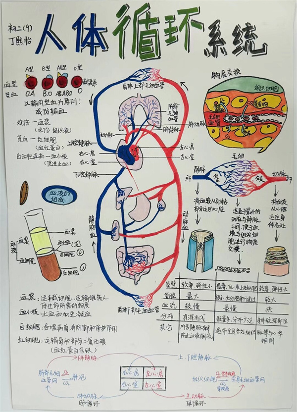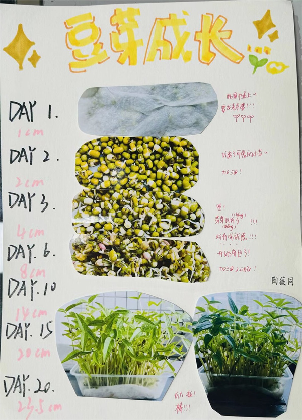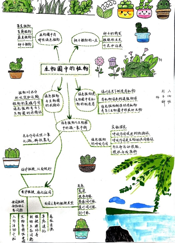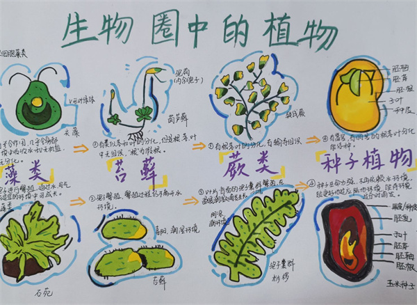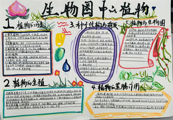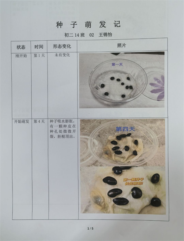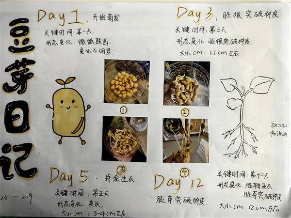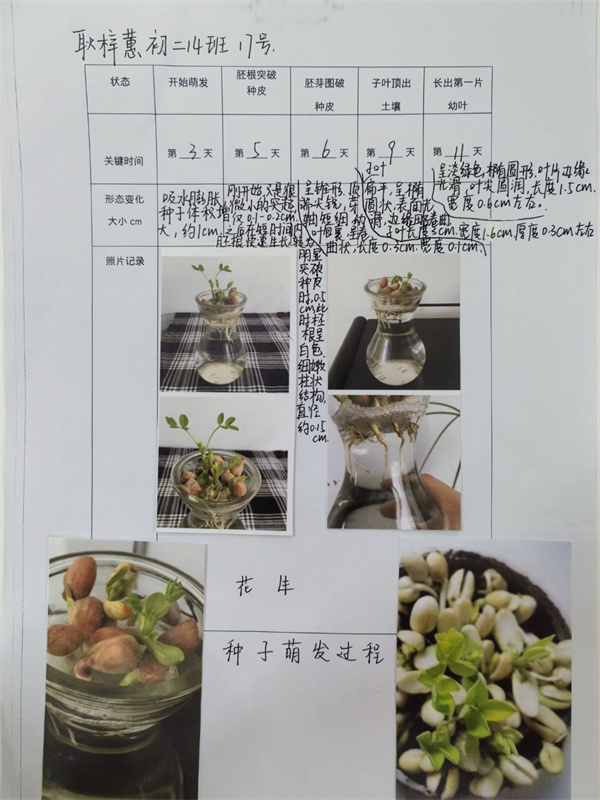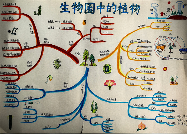 初二年级聚焦"生命成长观察",设置种子萌发实验与思维导图绘制两大任务。前者通过透明容器实时记录种子破土而出的全过程,后者以手绘方式系统梳理生物生理知识体系。在探究种子萌发作业中,同学们精心种植,每日观察并记录种子萌发不同阶段的状态,并用文字和图片记录生命成长的轨迹。在绘制思维导图作业中,学生们对学过的知识进行归纳梳理,探寻知识点之间的联系,主题鲜明突出,图文并茂,巧妙整合构建生物学科中的知识体系,提高了学生自主分析归纳能力,还极大的帮助同学们备战生物会考。