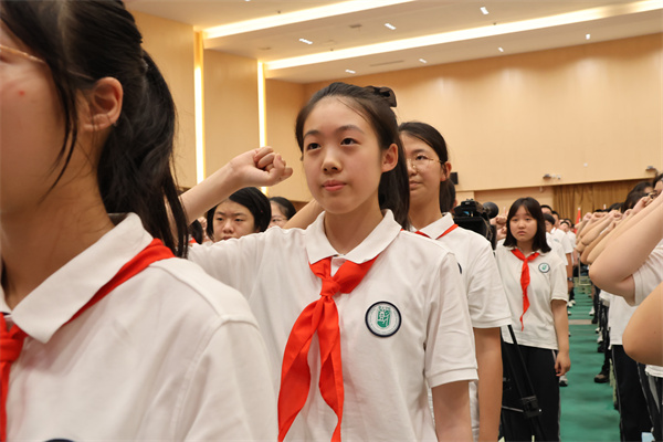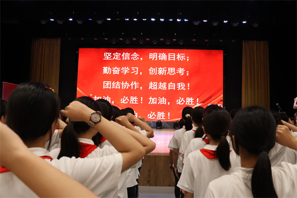 最后,在年级主任高波的带领下,全体初三学子举起右拳,庄严宣誓。铿锵有力的誓言回荡在校园上空,展现了学子们决战初三、决胜中考的坚定决心。这不仅是一次简单的宣誓,更是一次对自己、对父母、对老师的郑重承诺,将激励着同学们在未来的日子里,以誓言为准则,不懈奋斗。