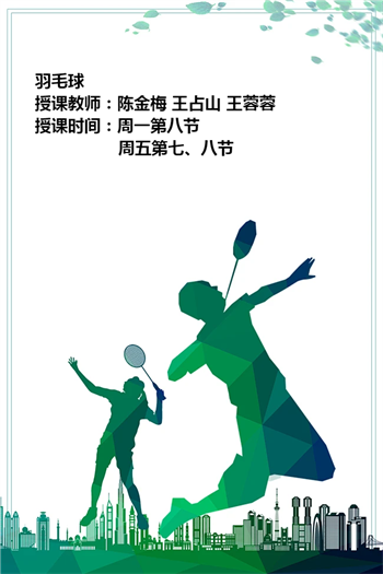 本课程以羽毛球运动为基础,结合理论与实践,旨在培养学生的运动兴趣、身体素质及团队协作能力。课程内容涵盖羽毛球基础知识、技术技能、战术策略及竞赛规则等,通过系统学习与训练,帮助学生掌握羽毛球运动的核心要素,提升竞技水平,同时培养顽强拼搏、积极进取的体育精神。