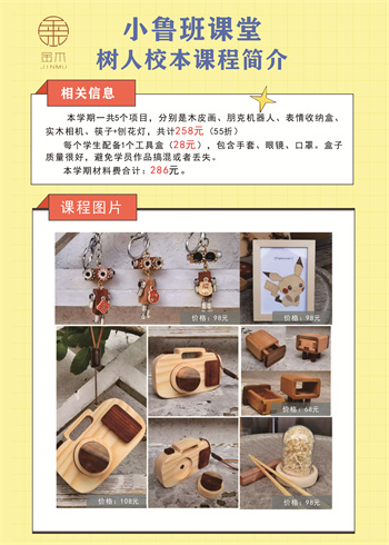 鲁班课堂校本课程是一门以传承和弘扬鲁班精神为核心,注重学生动手能力和创新思维培养的特色课程。课程通过讲解鲁班的故事,学习其创新精神和工匠精神,同时结合木工制作等实践活动,让学生在动手过程中感受传统文化的魅力,提升实践能力和创造力。