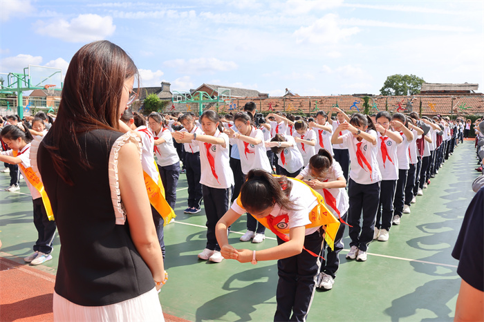 随后,学校少先大队部代表宣读了教师节倡议书。大队委的声音清亮有力,每一条倡议都如一粒石子,在师生心湖中漾开圈圈涟漪。台下同学凝神静听,不时默默点头。如何尊师、何以感恩的信念,正悄然根植于一颗颗年少的心灵。