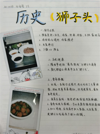 1.营养/文化探究:选择其中一道菜,简单分析其主要的营养成分(荤素搭配、烹饪方式对营养的影响等),或探究其名称、造型、吃法背后的文化习俗。