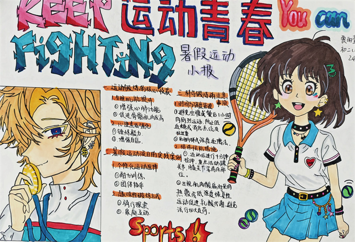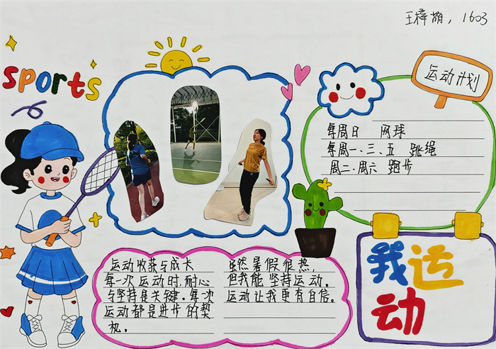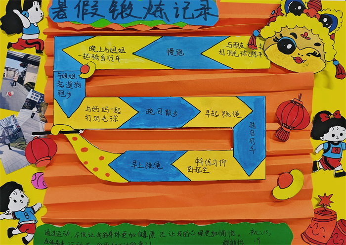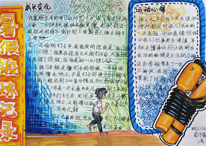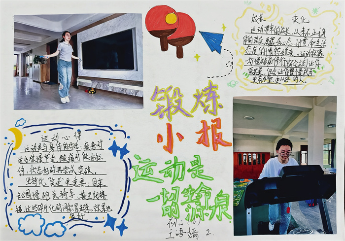 跨学科融合作业更成为假期运动的亮点。同学们将体育与多学科知识结合,精心绘制跑步路线地理图、设计体育主题美术小报、撰写运动感悟散文、制作假期锻炼电子相册,在实践中实现“运动+学科”的综合素养提升。