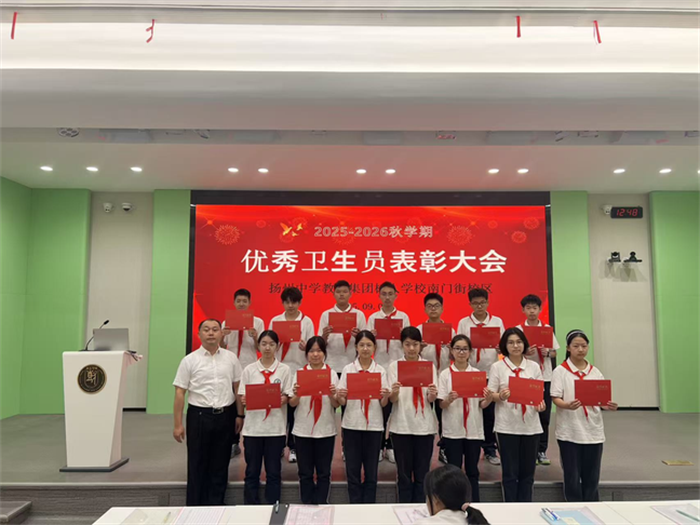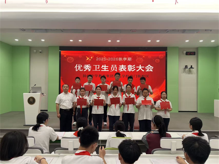 首先,教务处赵全老师为2024~2025学年第二学期的校级优秀卫生员,颁发荣誉证书,并表彰他们在过去一个学期里对防疫做出的贡献。