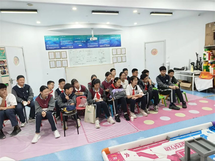 初一(3)班学生走进博佳科教编程中心,沉浸式体验了一场AI机器人投球训练活动。活动现场,同学们操控机器人灵活移动,精准投球,完成了一场精彩的对抗赛,在亲手操作中解锁了科技与体育结合的乐趣,体验了编程与AI的魅力!