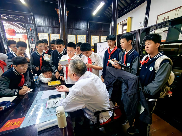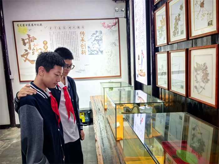 初一(1)班全体同学相聚于青芝堂中医药研究院。同学们与两位老中医探讨对中医的见解与疑惑,通过对中药材的触摸感受医药的神奇。接着,老师将医学融入学科向我们传授“典集里的中医,生活中的百草”文学知识。通过本次活动,同学们品味了中医的博大精深,体会了语文学科与中医学识的温度,从欢乐中获取知识,在学习中获得成长。