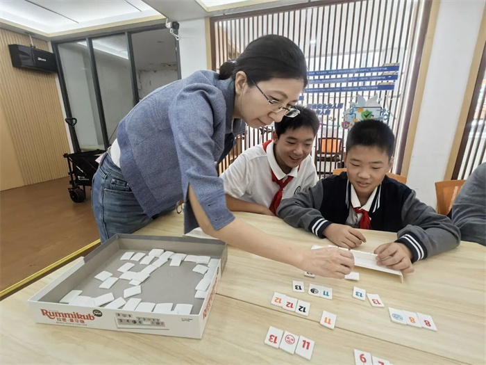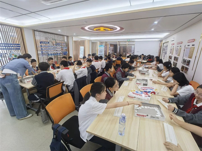 在皇宫社区党群服务中心会议室内,一场桌游课通过富有挑战性的游戏正在进行。如此轻松愉悦的环境,初一(14)班的同学们的逻辑思维能力在趣味游戏中得到提升。接下来的平面镶嵌探索之旅则带领学生从用一种正多边形镶嵌,用一种普通多边形镶嵌,用两种正多边形镶嵌,用三种正多边形镶嵌这四个方面探索了平面镶嵌的各种方式。这样的课程设计,真正实现了“在玩乐中培养灵活大脑”的教育目标。