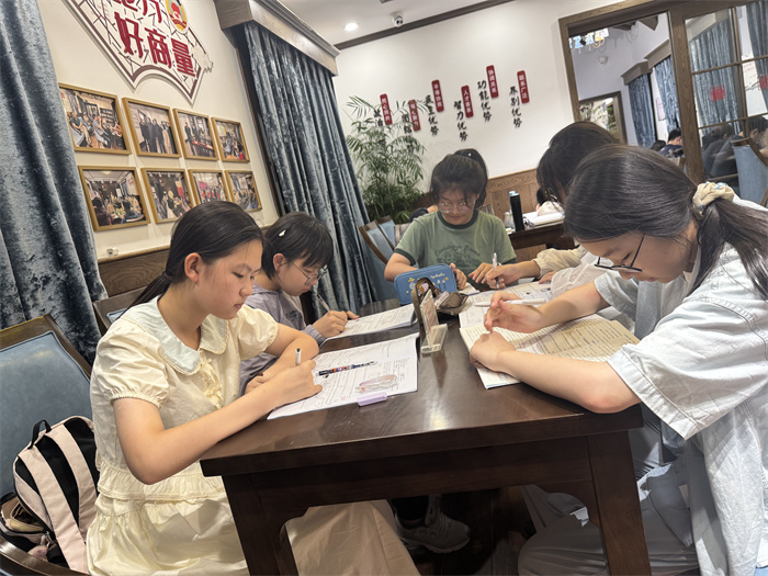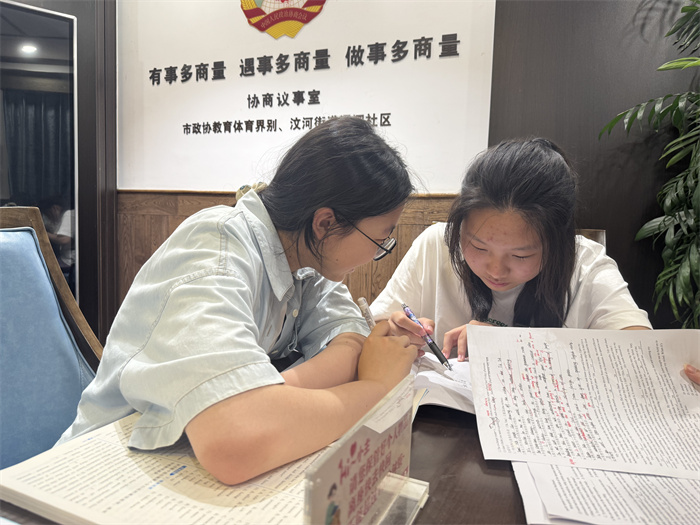 在学校的倡议下,我们组成了学习小组。同学相约在城市书房,他们或是围坐在一起探讨数学难题,或是用英语交流暑期见闻,遇到分歧时还会展开讨论。