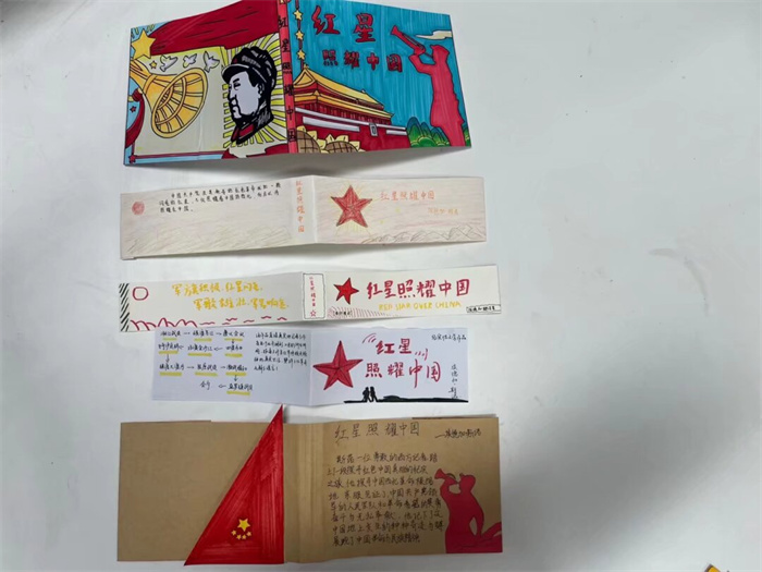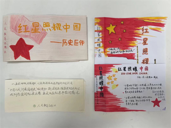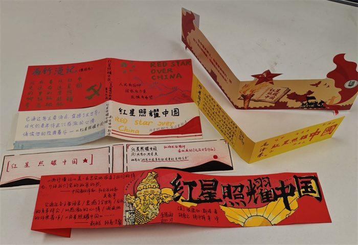 与此同时,同学们还参与了“名著腰封设计”活动。他们以《红星照耀中国》为主题,设计出独具特色的腰封。这些腰封不仅美观大方,更融入了同学们对名著的理解与感悟。通过这一活动,同学们不仅提升了文学素养,更锻炼了创新能力和动手能力。