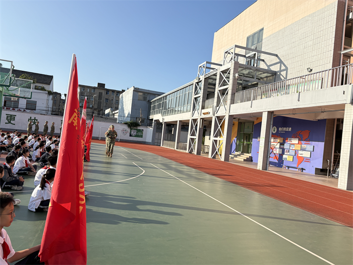 5.校长讲话:南门街校区校长姜亚芹为同学们送上殷切嘱托,提出三点核心期望:一是“以汗水铸就坚韧”,在训练中不惧挑战,锤炼不怕苦、不怕累的品质;二是“以纪律凝聚团队”,遵守训练规则,在协作中体会集体力量;三是“以挑战突破极限”,勇敢走出舒适区,挖掘自身潜能。同时,姜校长特别强调“安全第一”,明确学校已成立专项保障工作组,制定了全面的安全预案与应急处置机制,为训练保驾护航,确保活动安全、有序、高效推进。