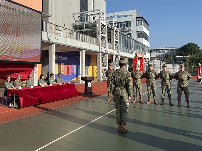 3.国防教育辅导员展示:辅导员们凭借过硬的专业素养,进行了精彩的技能展示,整齐的动作、昂扬的风貌,让同学们直观感受到军人的纪律与担当,赢得现场阵阵掌声。