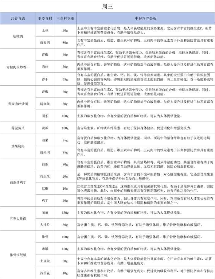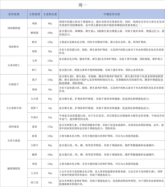 一周食谱