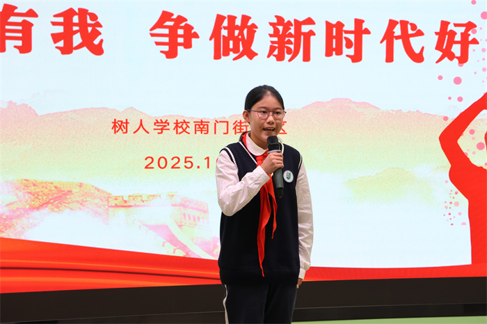 演讲结束后,树人学校副校长卢生茂为本次活动作总结寄语。他首先高度评价了各位竞选队员的出色表现,并勉励队员们:作为新时代的少先队员,要始终高举队旗跟党走,认真履行自身职责,团结进取、勇于担当,共同经营好少先队这个温暖大家庭。同时,他也对大队委员提出明确要求,希望他们处处以身作则,做到文明守纪、勤奋好学,以实际行动为同学们树立榜样,不负“大队委”这一光荣称号。最后,卢校长寄语全体少先队员,“学习先锋精神,树立远大志向,锤炼过硬本领,在新思想的引领下不断奋进,共同奏响属于这个时代的青春强音!”最后,团委副书记李文慧老师带领全体队员呼号,活动圆满结束!
