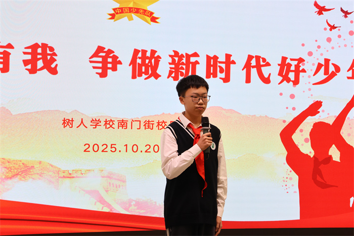 为完善少先队组织建设,增强少先队员的自主管理意识与服务精神,为心怀热忱、志在奉献的队员提供锻炼自我、展示才华的舞台,我校2025级大队委竞选活动于10月20日正式拉开帷幕。本次竞选旨在选拔一批品学兼优、责任心强、具备良好组织协调能力的优秀少先队员,充实大队委力量,共同谱写树人学校少先队工作的新篇章。