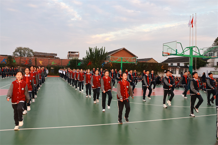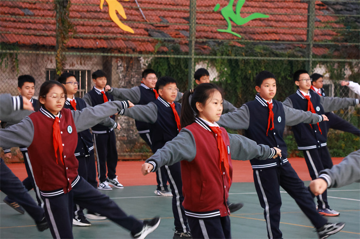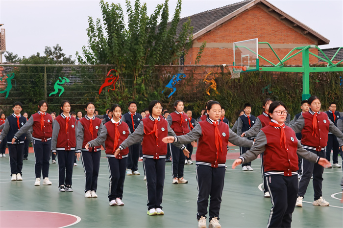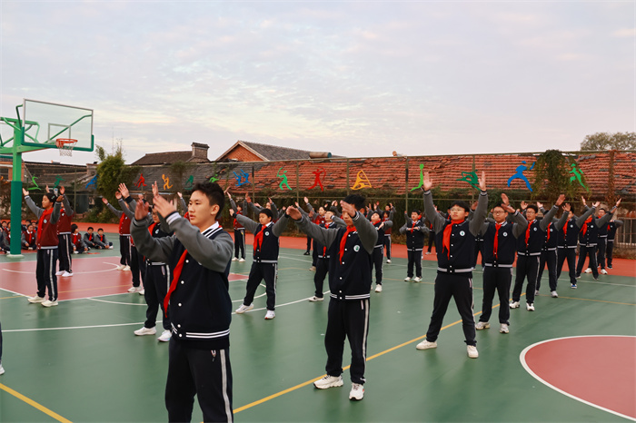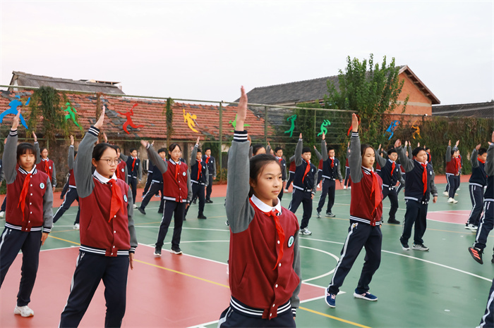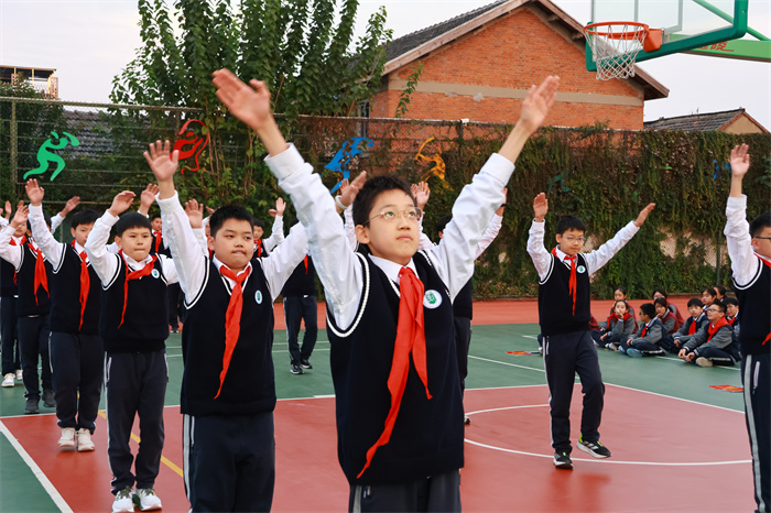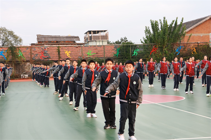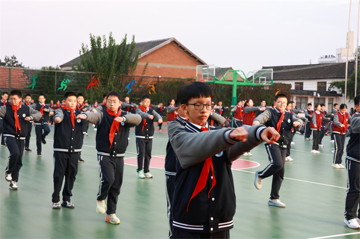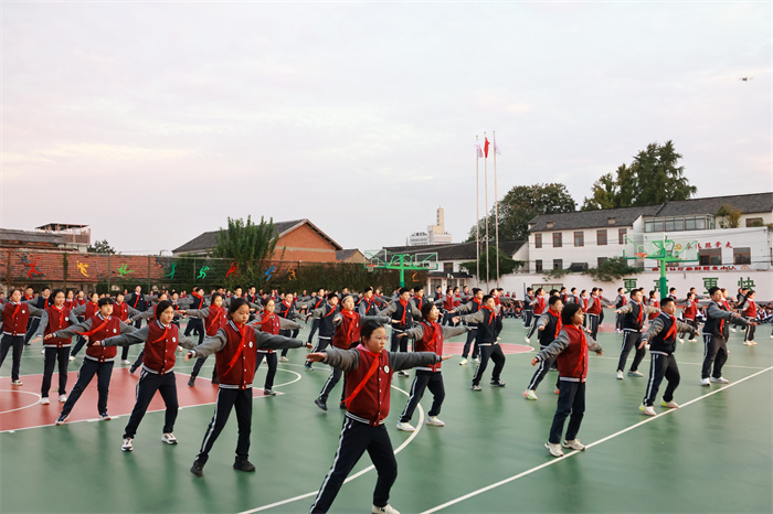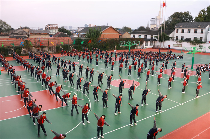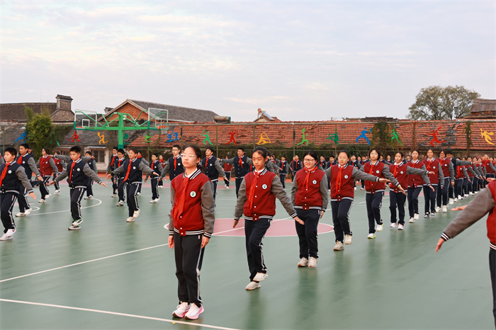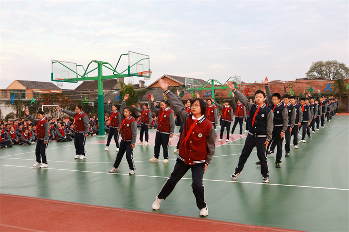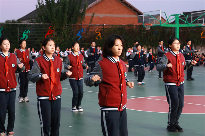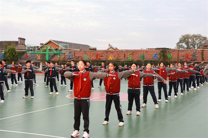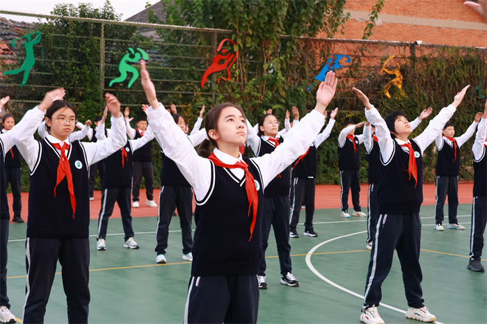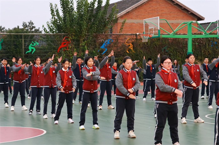 随着熟悉轻快的广播体操音乐奏响,比赛正式进入白热化阶段。抬手、抬脚、弯腰、转身、跳跃……同学们将每一个动作都做得标准规范、刚劲有力又不失灵动优美。从舒展的伸展运动到利落的整理运动,一伸手、一抬腿间,皆是平日里刻苦训练的扎实成果。整齐划一的方阵、精准规范的动作、昂扬饱满的斗志,一次次点燃赛场气氛,赢得评委老师与在场观众的阵阵掌声,整个操场都洋溢着青春的活力与激情。