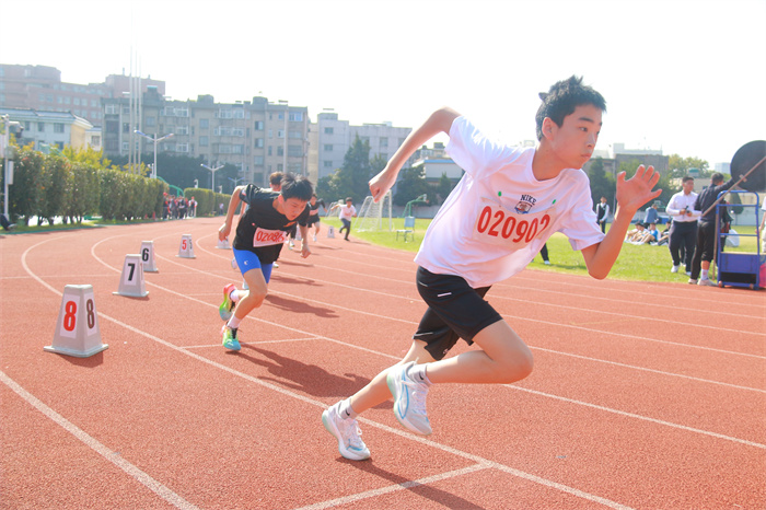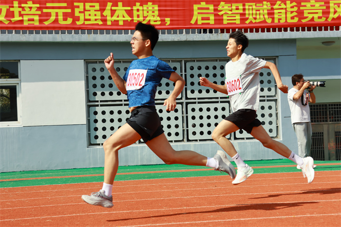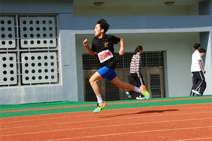 初三 1 班赵晨希同学:半圈跑道,满是初三男生的斗志!200米的征途里,你用均匀的呼吸对抗疲惫,用坚定的眼神锁定终点,把班级的期望都化作脚下的动力。奔跑吧,你是初三的“节奏大师”,终将在终点收获掌声。