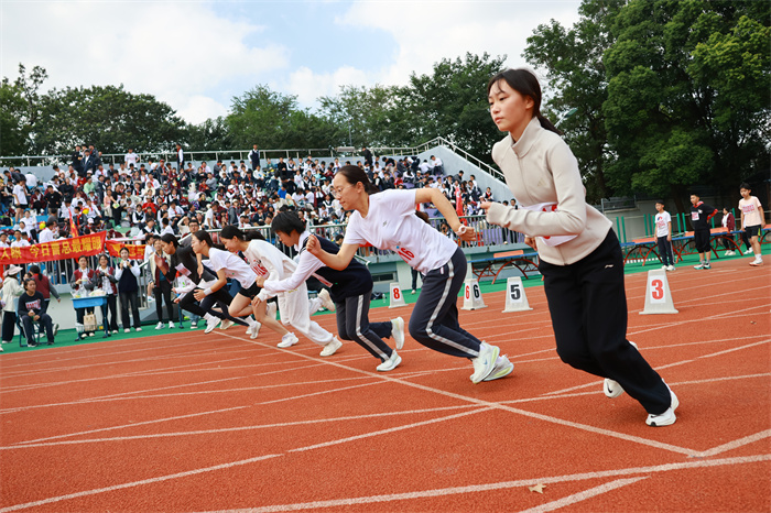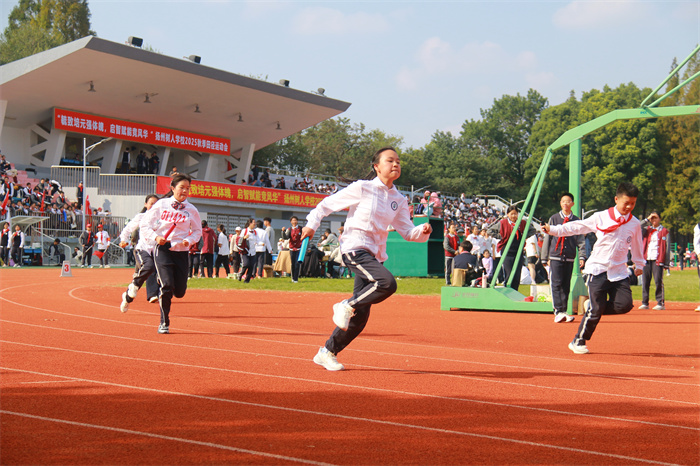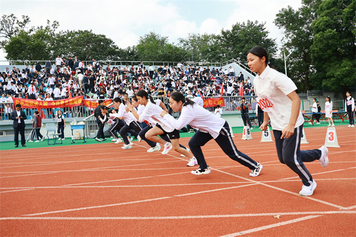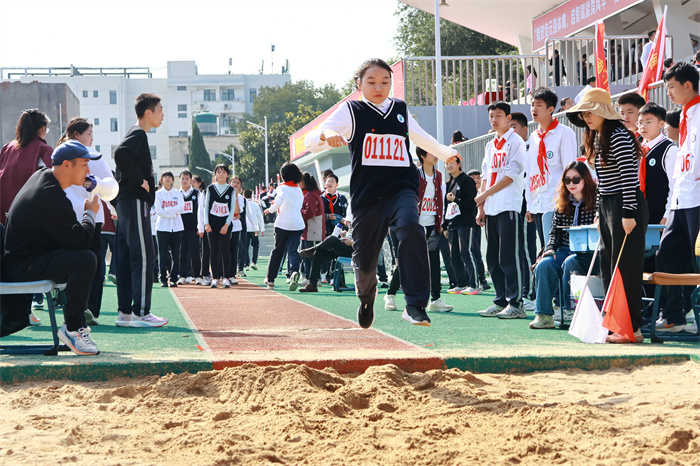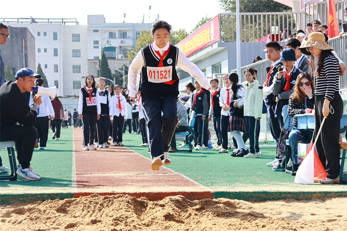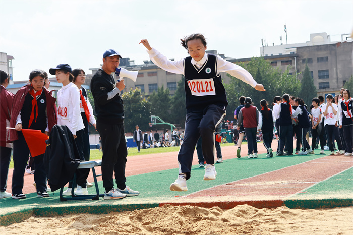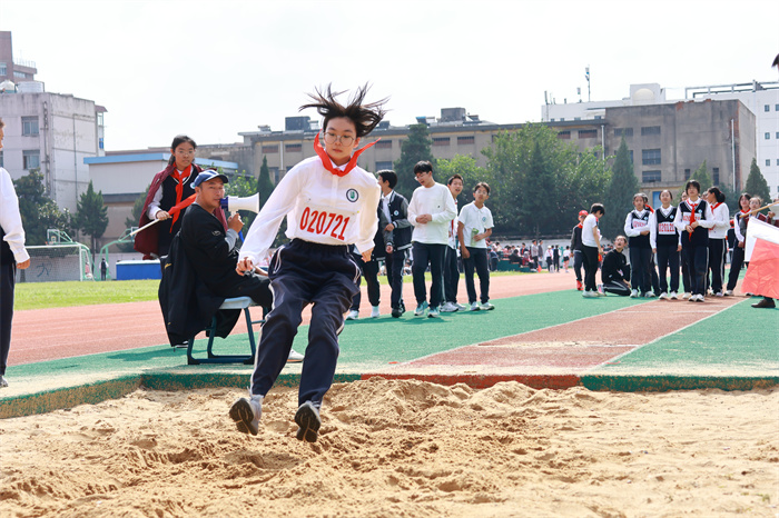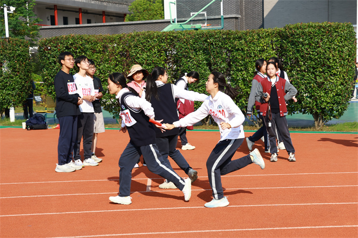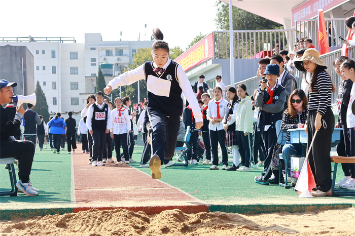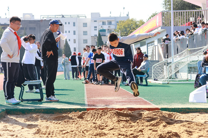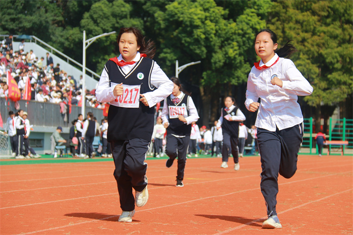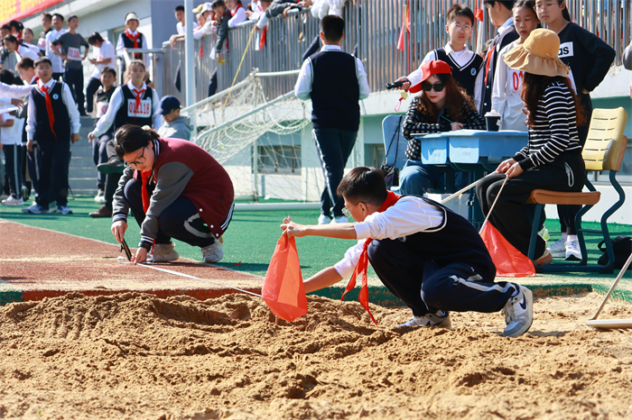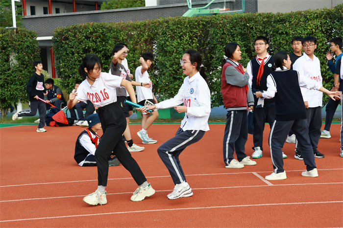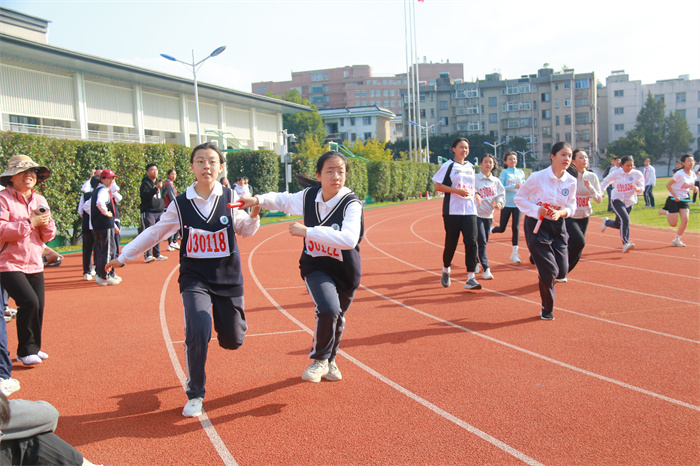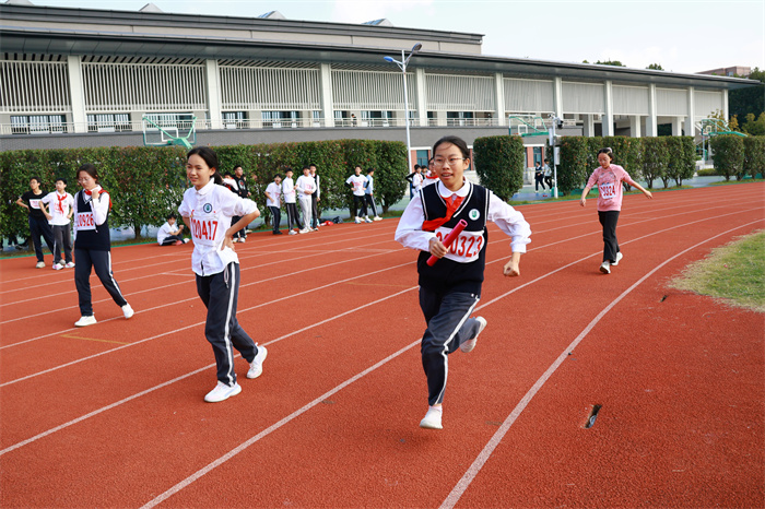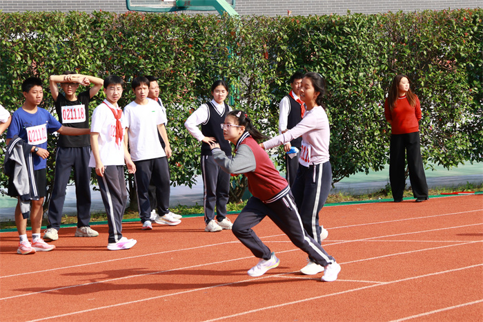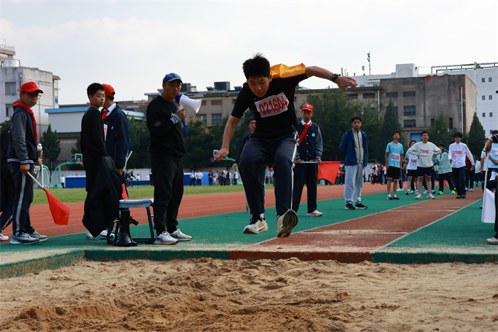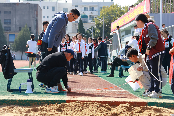 初二 16 班来稿!赛场之外,志愿者们的身影同样忙碌。他们穿梭在检录处,补给棚点医疗点之间,为运动员递水、记录成绩、提供应急帮助;裁判老师们坚守岗位,严格执裁,确保每一项赛事公平公正;啦啦队挥舞着手臂,喊着加油的口号,用热情感染着每一位参赛者,让整个运动场充满了温暖和力量。