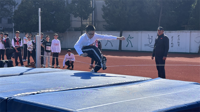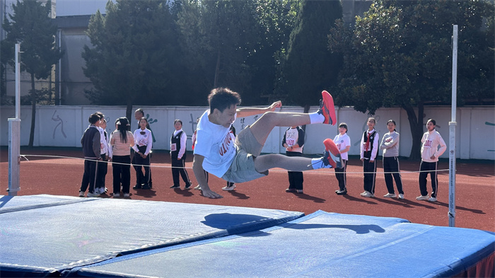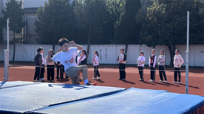 初三 4 班来稿!横杆丈量的不仅仅是跳跃的高度,还是你们的勇气和决心。那紧绷的双腿,在天空绘出弧线,而软垫的陷入,承载的不仅仅是你们的身体,还是你们梦想的重量。