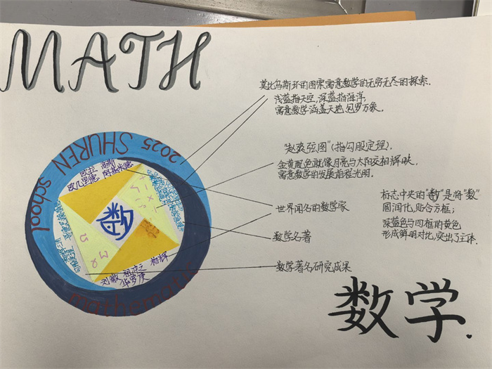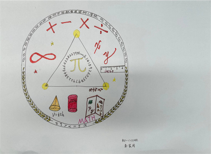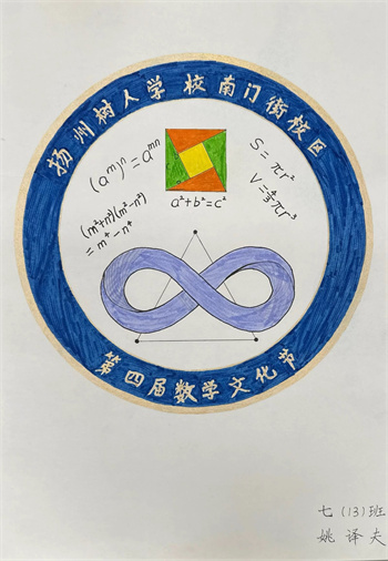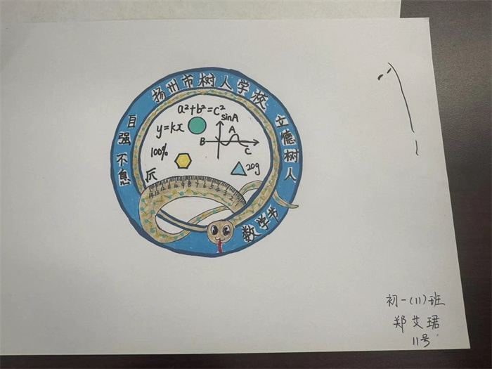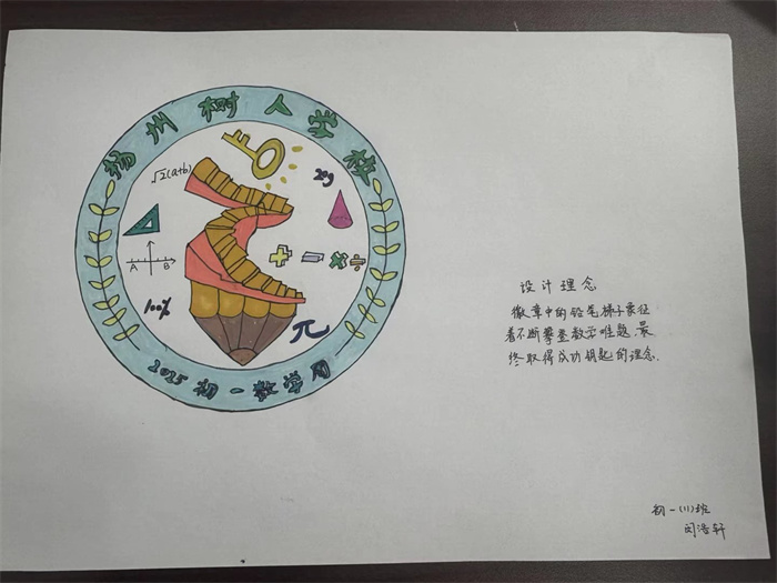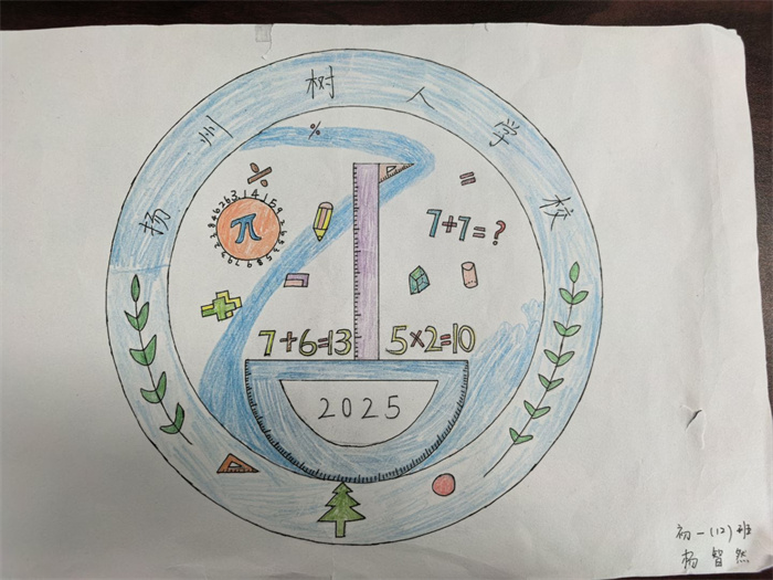 当数学符号遇上艺术创意,会碰撞出怎样的火花?树人学校南门街校区初一年级开展了 “设计数学文化节徽章”活动。同学们以笔为媒,将抽象的数学元素化为生动的视觉符号,让数学之美在创意设计中绽放。