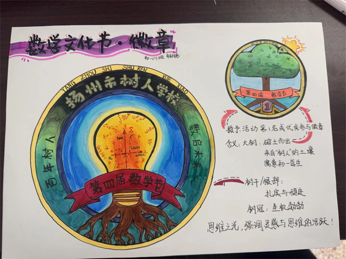 以徽章为桥,让数学走出课本——本届数学节通过创意设计的形式,不仅让初一学子加深了对数学元素的理解,更在实践中体会到数学的多元魅力,为校园文化增添了一抹理性与创意交织的亮色。