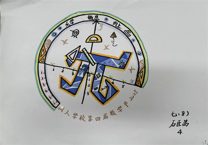 同学们脑洞大开:有的以“π”为核心,搭配对称的几何图形凸显数学的严谨之美;有的用优美的图形勾勒出动态感,体现数学的逻辑韵律;还有的将“第四届”巧妙融入数字符号,让徽章兼具标识性与创意性。一笔一划间,原本抽象的数学概念被赋予了鲜活的色彩与造型,每一枚设计都藏着独特的巧思。