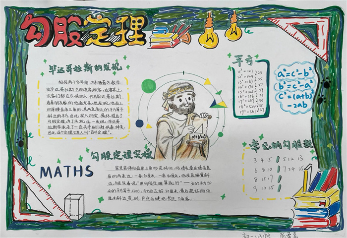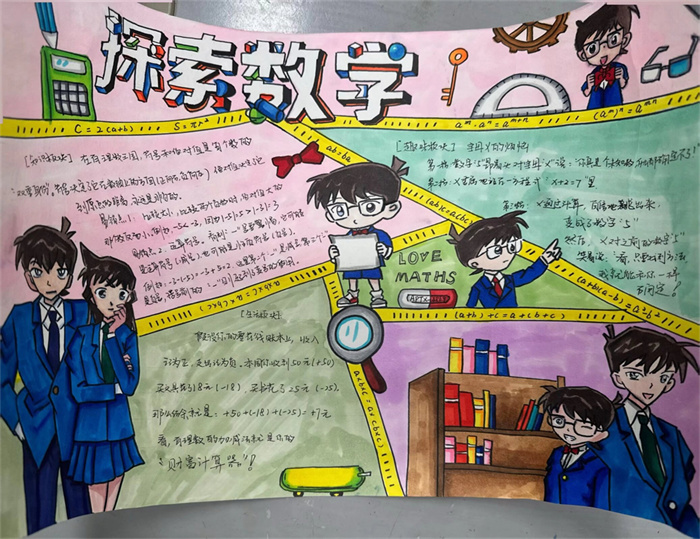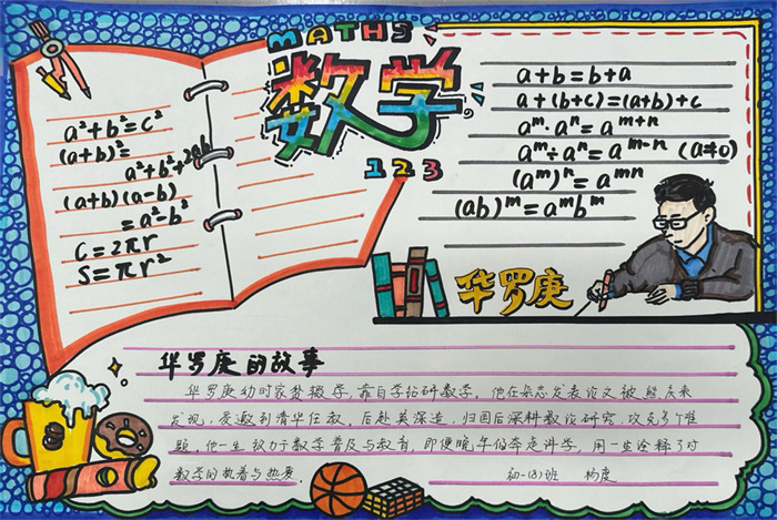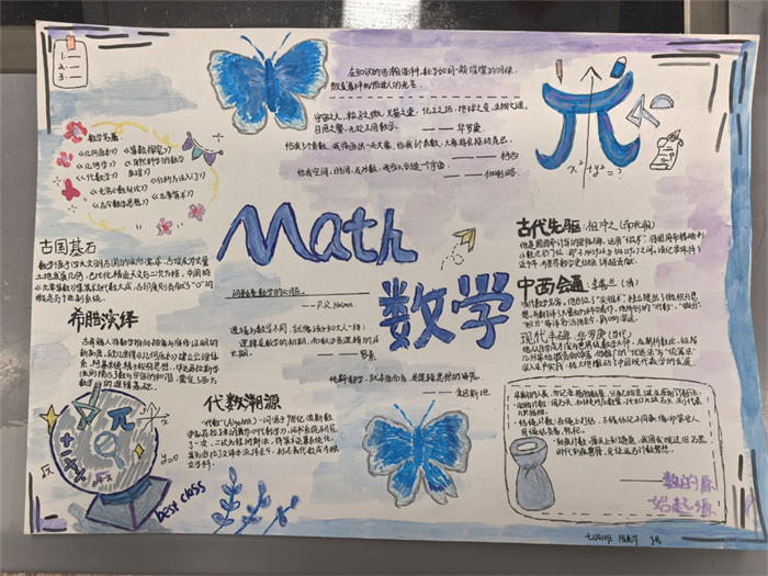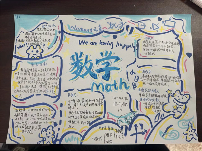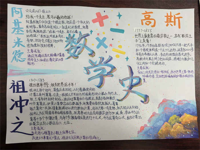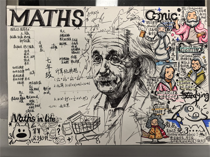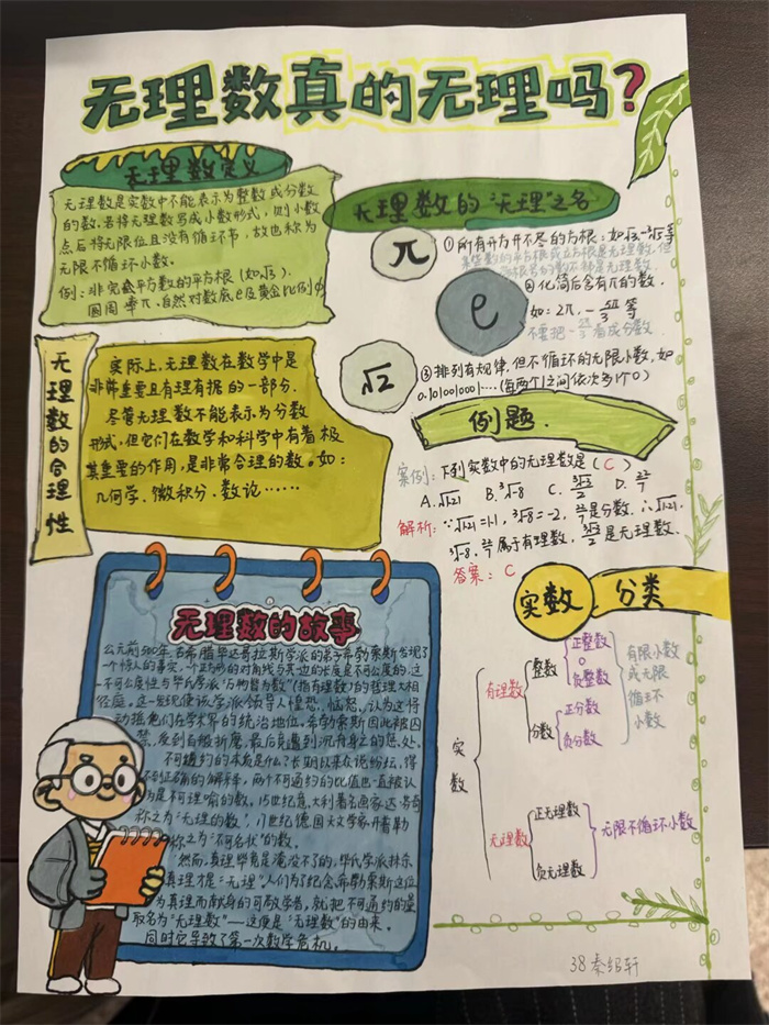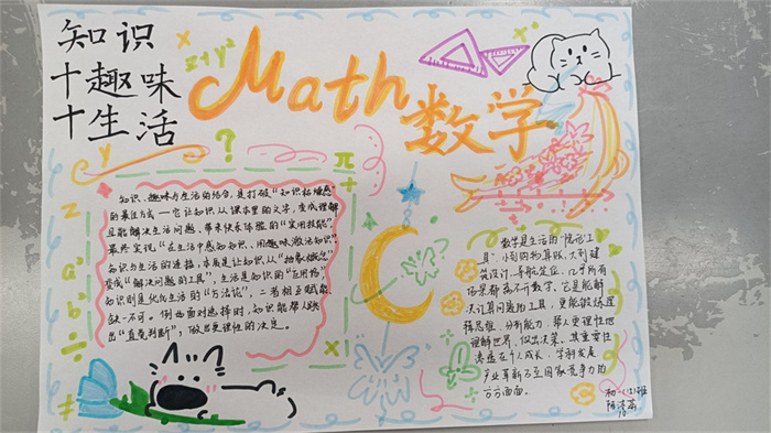 手抄报不是知识的堆砌,是让学生用自己的方式‘重构’数学。从知识梳理到创意手绘,同学们在动手过程中既巩固了知识,也感受到数学的历史厚度与生活趣味。接下来,优秀作品将在大厅持续展示,让更多同学在笔尖的创意里,遇见不一样的数学之美。