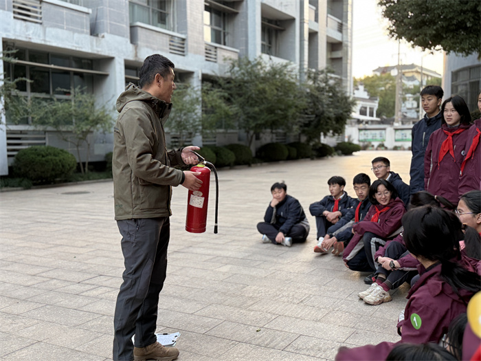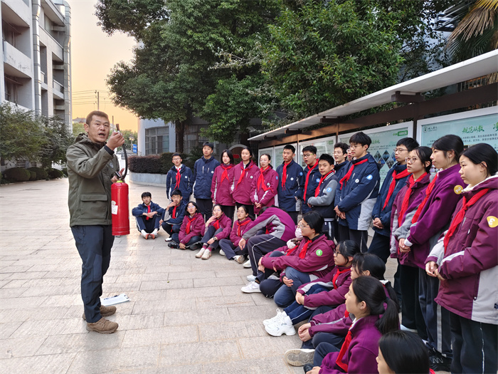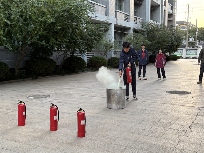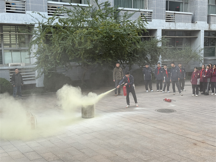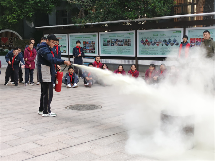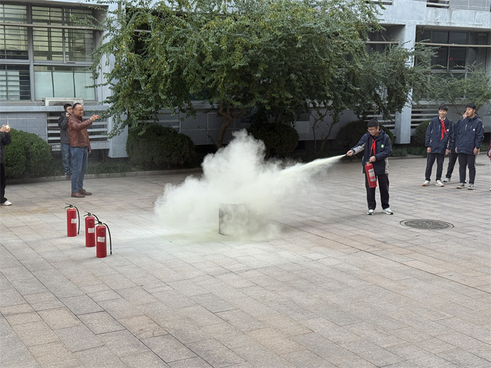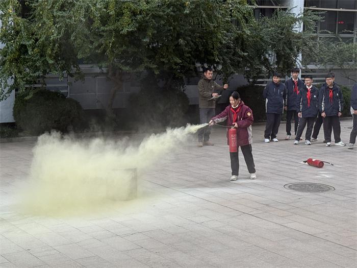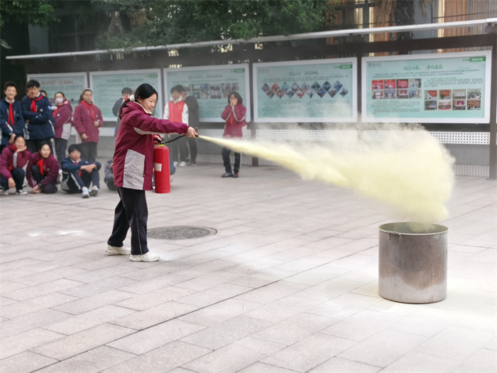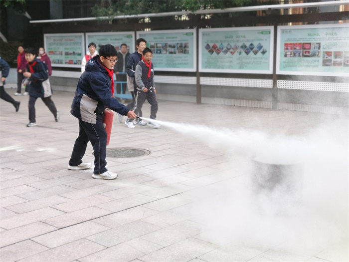 同学们在专业消防人员的指导下,亲手操作灭火器,学习"提、拔、握、压"的正确步骤。面对熊熊燃烧的火盆,大家沉着冷静,成功将火焰扑灭。