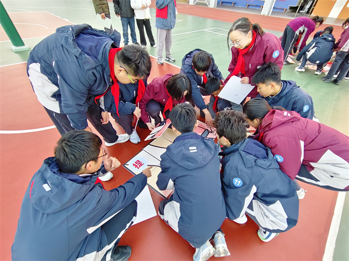 在"消防知识大拼图"环节,同学们需要在限定时间内完成一幅消防知识主题拼图。大家分工明确,配合默契,女生团队以8分06秒的成绩拔得头筹。