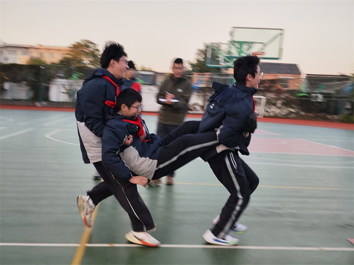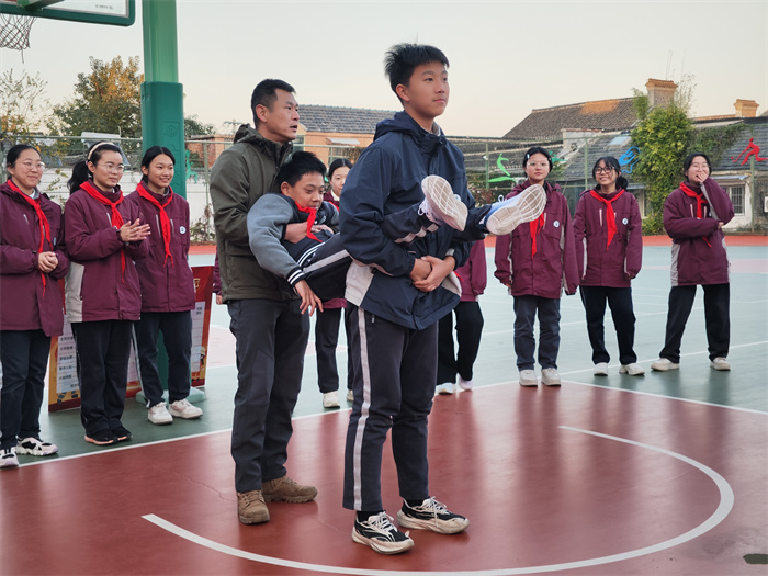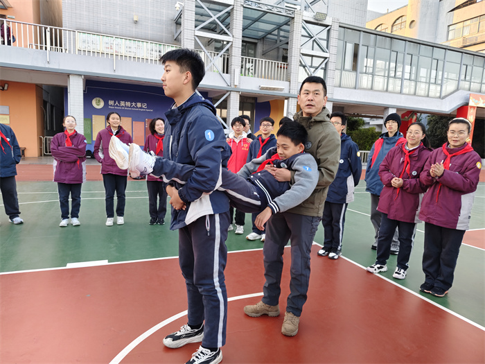 同学们两人一组,一人模拟"伤员",另一人运用"扶行法"将其安全运送到指定地点。比赛中,大家配合默契,展现了良好的团队协作精神。