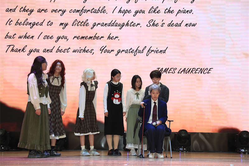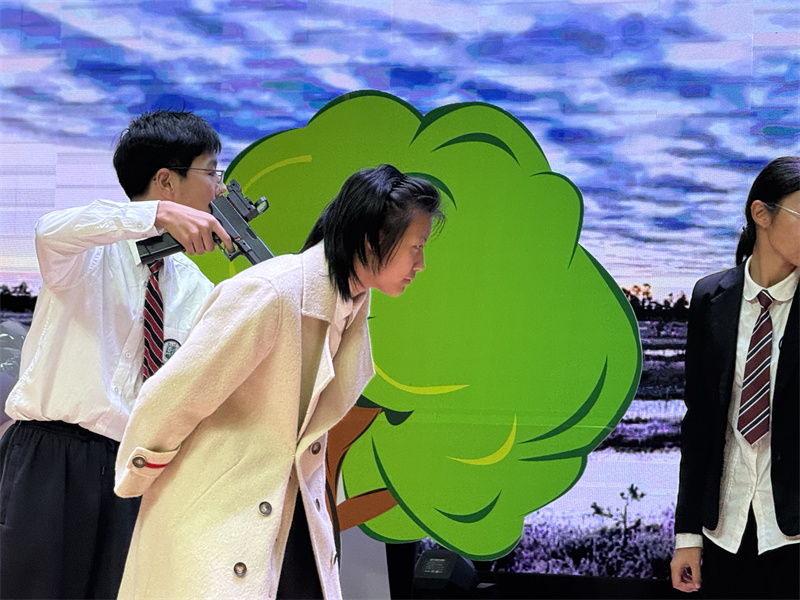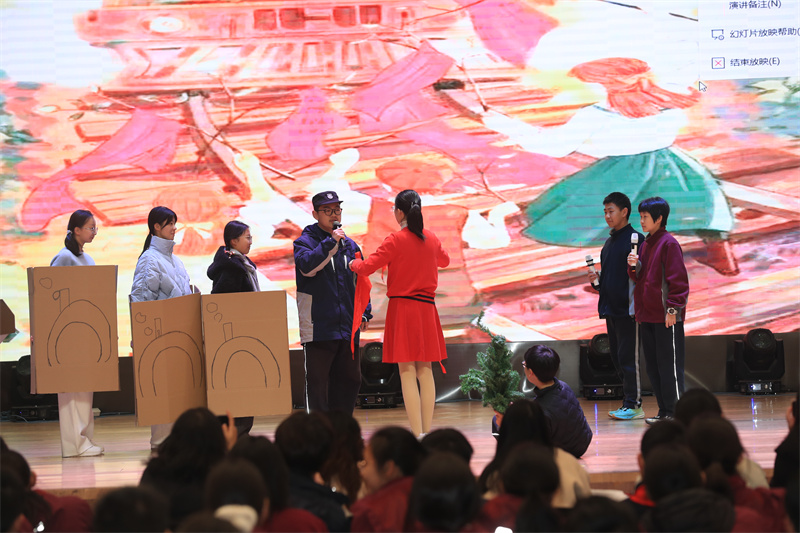 此外,初二(5)班带来的《汤姆·索亚历险记》墓地惊魂片段,紧张刺激,考验着少年们的正义与承诺。初二(13)班带来的《时间胶囊》,通过一名少女的意外时空旅行,巧妙连接历史与当下,展现了出色的创意与构思能力。