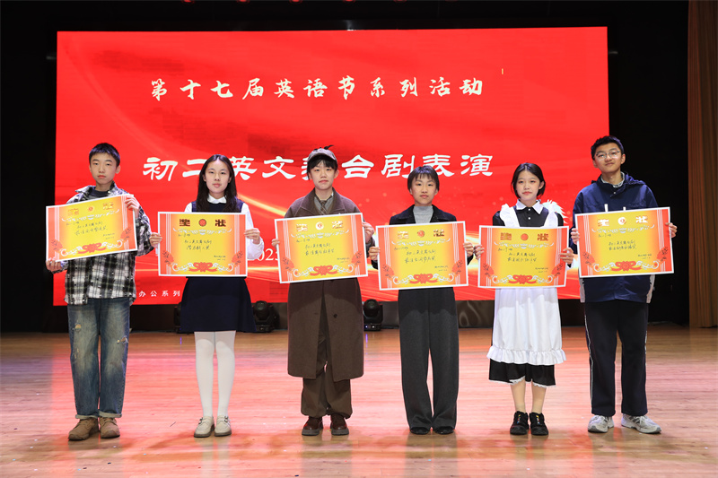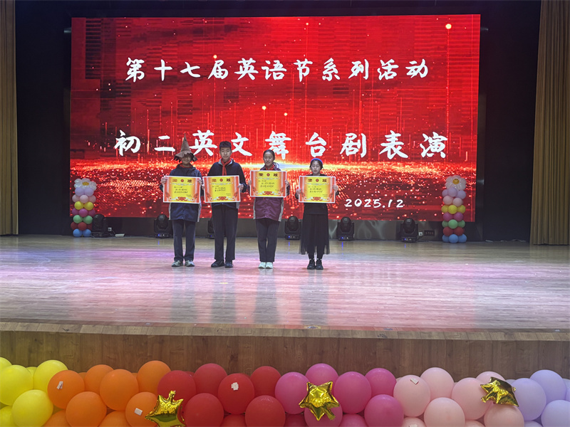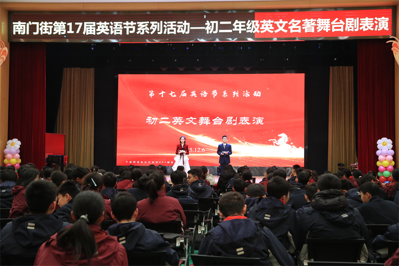 2025年12月6日,扬州中学教育集团树人学校南门街校区第十七届英语节系列活动迎来了高潮——初二年级英文课本剧集中展演。初二年级共16个班级全体参与,将文学经典搬上舞台,用流畅的英语对白、精湛的表演和丰富的创意,充分展现了同学们开阔的文化视野和深刻的文本解读能力。