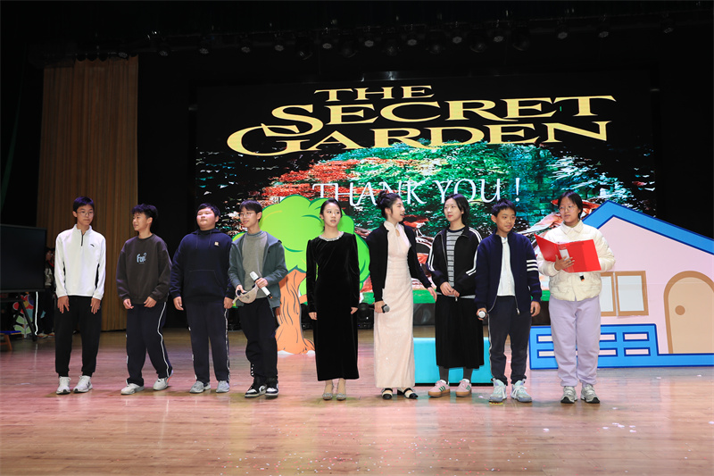 关于友谊、勇气与自我发现的成长故事,格外动人。初二(15)班的《小妇人》片段,温暖刻画了马奇姐妹与劳里之间真挚的情谊。初二(11)、(16)、(4)班不约而同地选择了《秘密花园》,通过玛丽和科林的故事,生动演绎了自然、友谊与信念如何唤醒沉睡的生命力与快乐。初二(12)班的《彼得·潘》带观众飞往永无岛,重温永不逝去的童年梦想。初二(8)班的《铁道儿童》则颂扬了危难中展现的责任与勇敢。