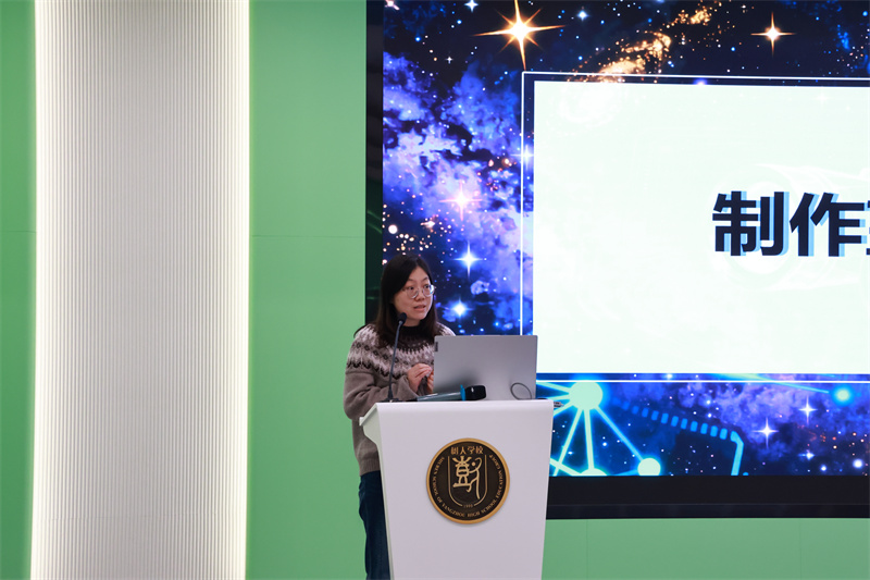 随后,物理教师赵晨带来《制作望远镜》课例分享,展示了实践类课程的创新设计思路,通过AI辅助完成方案设计、问题排查、成果优化,感受AI与物理学科的融合价值,激发科学探索兴趣,提升动手操作、数据解读和创新实践能力。地理教师肖翠翠以《走向深蓝:探寻海洋资源开发与保护》为主题,呈现了学科融合与实践探究的教学案例,做与时俱进的“引路人”,主动拥抱人工智能,让课堂与时代同频共振,让知识在真实世界中“生根”,教学设计源于生活,归于实践,教学的最高层次,不是传授答案,而是点燃思维,塑造价值观。
