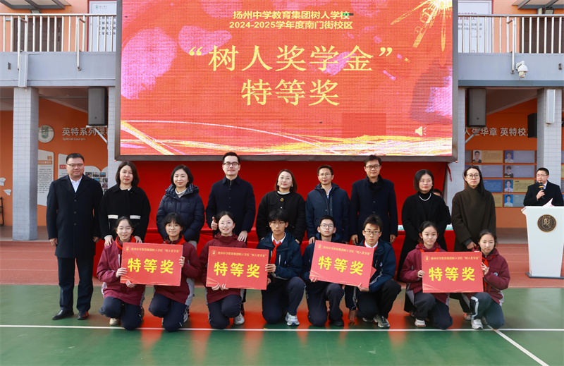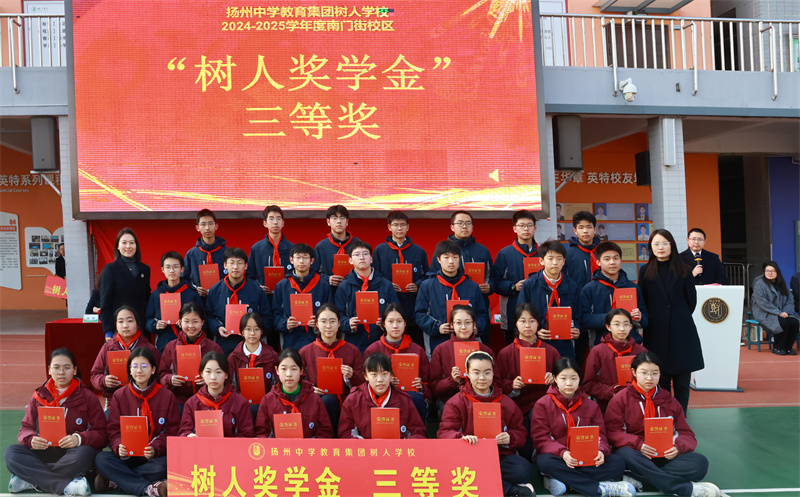 2025年12月18日下午,树人学校南门街校区氛围庄重而热烈,2024-2025学年度“树人奖学金”颁奖典礼在此隆重举行。我校校长赵涛、党委副书记兼南门街校区校长姜亚芹、副校长卢生茂等行政领导,获奖学生家长代表及校区全体师生共同出席了这一年度盛事。教务处、教科室主任常松主持了本次典礼。