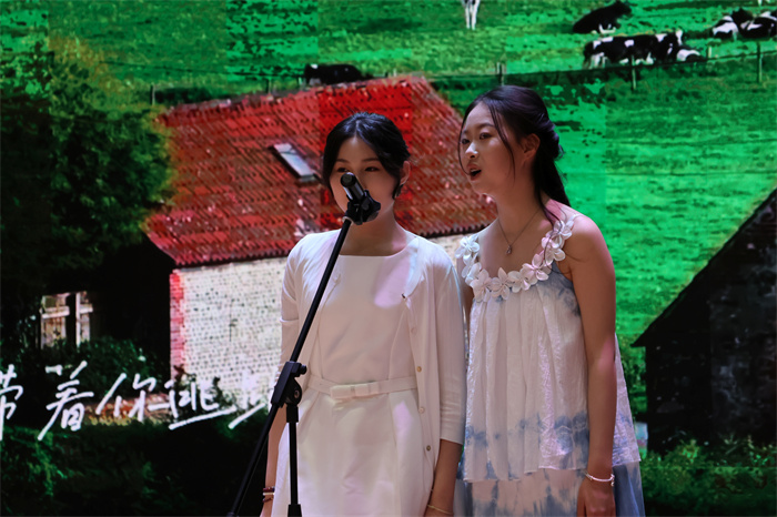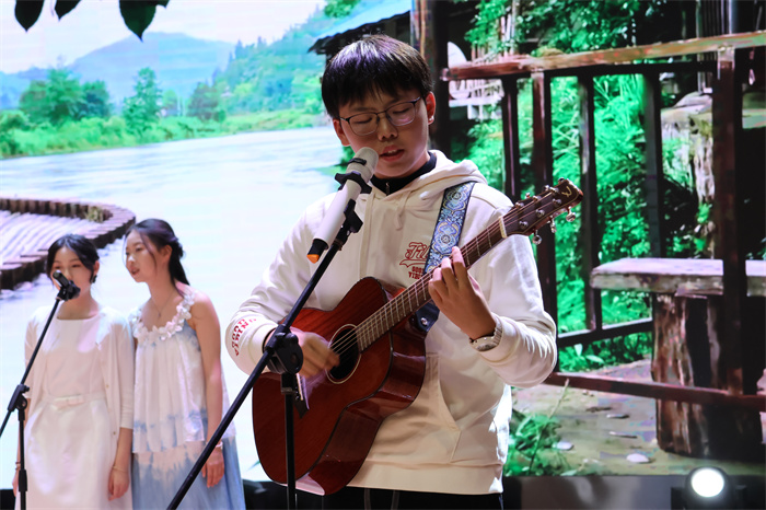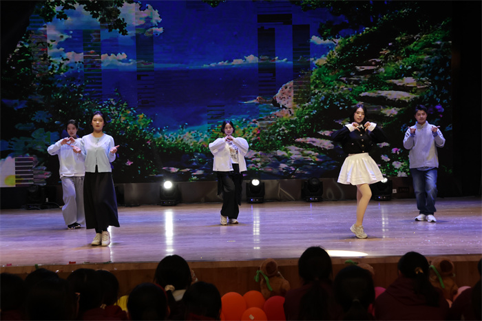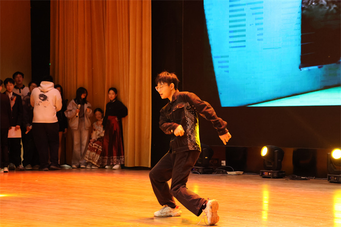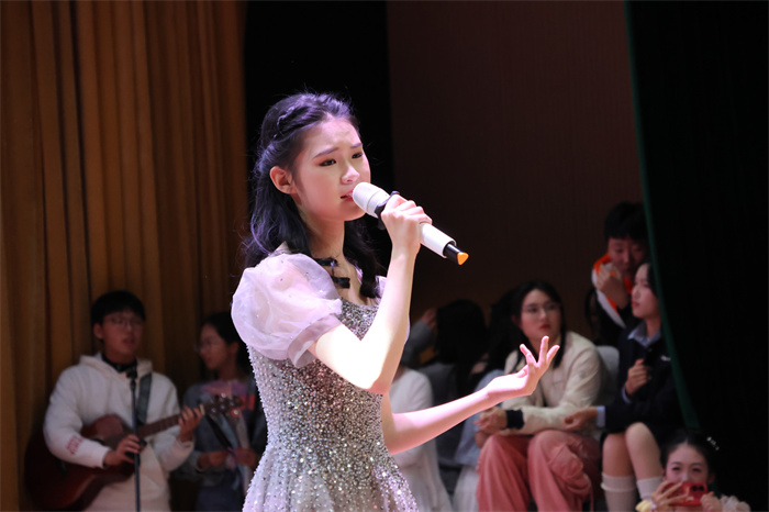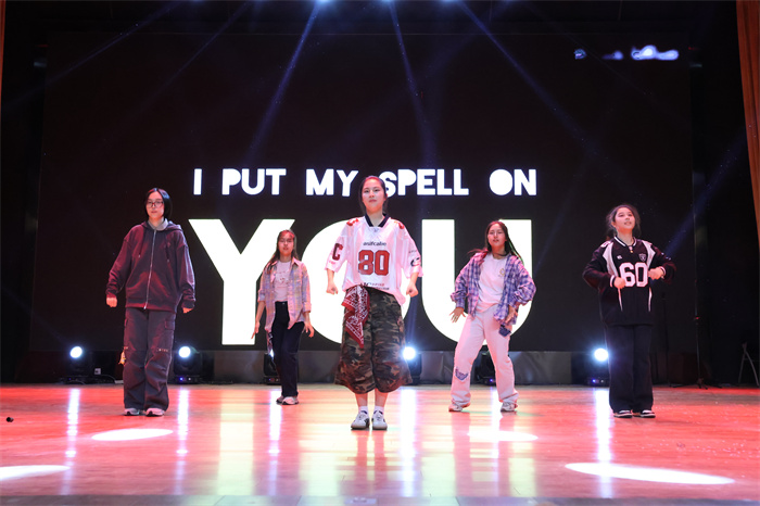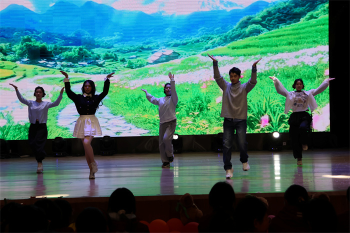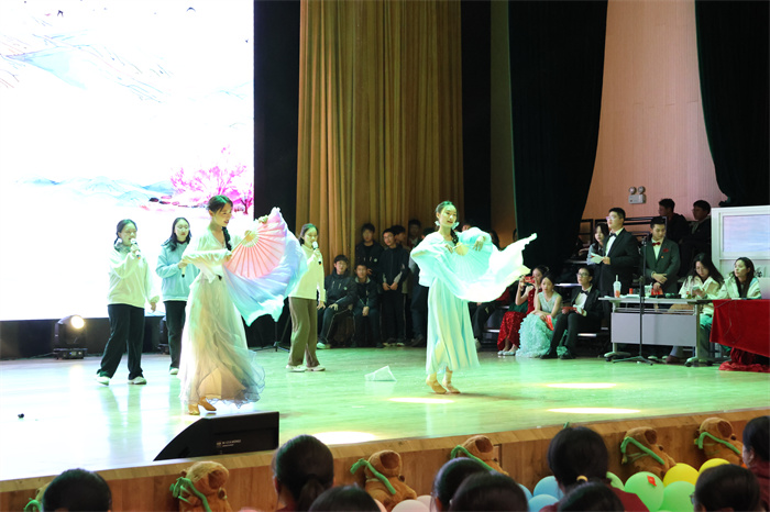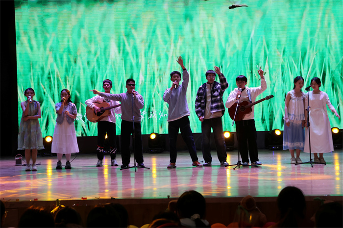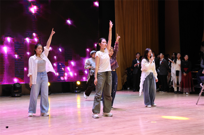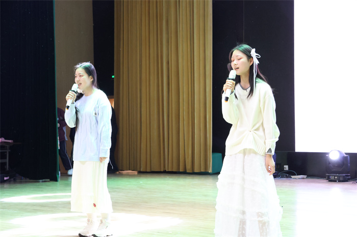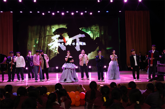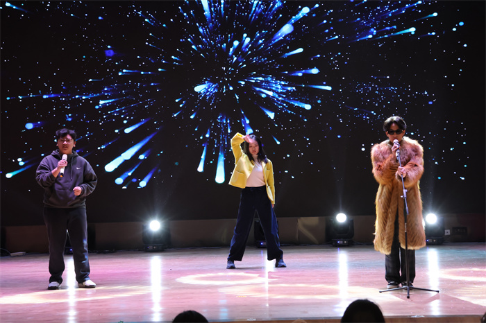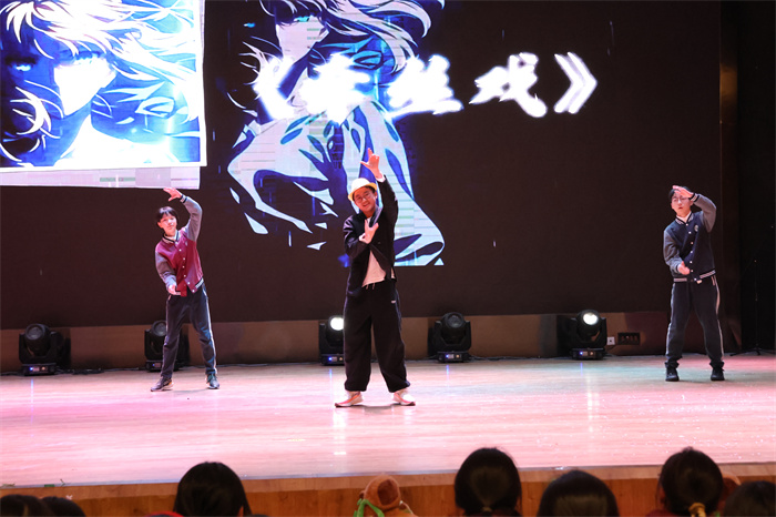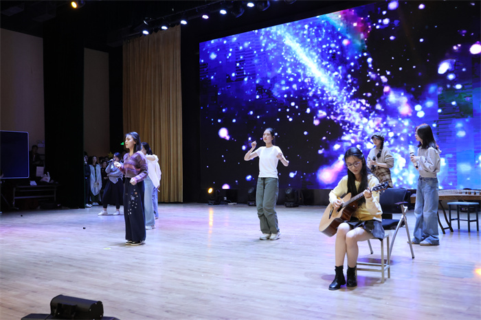 初三(6)班和初三(9)班同学表演的歌舞《舞动星河》动作整齐,韵律感十足,感染力强,台上台下气氛热烈。