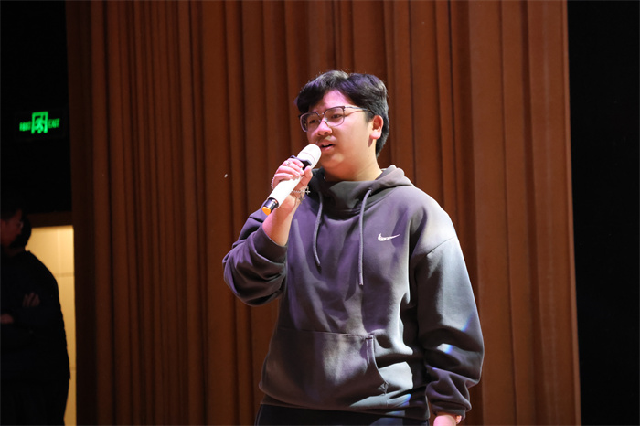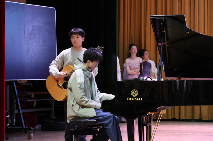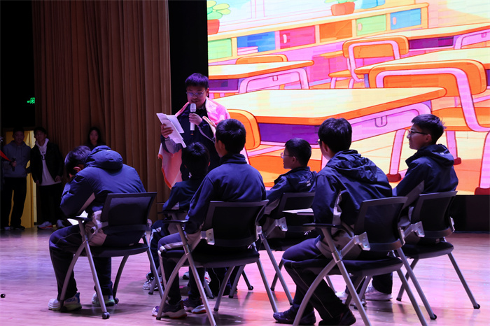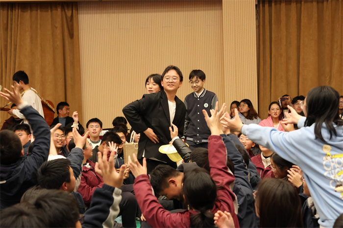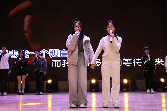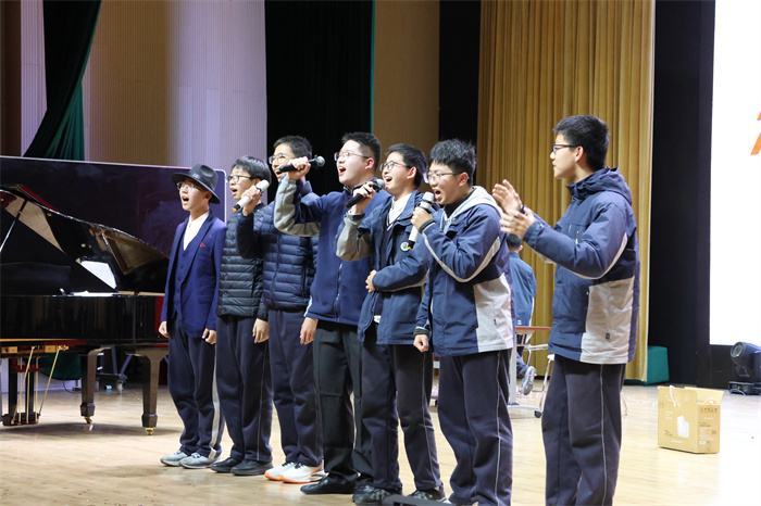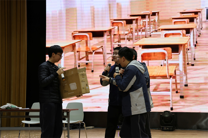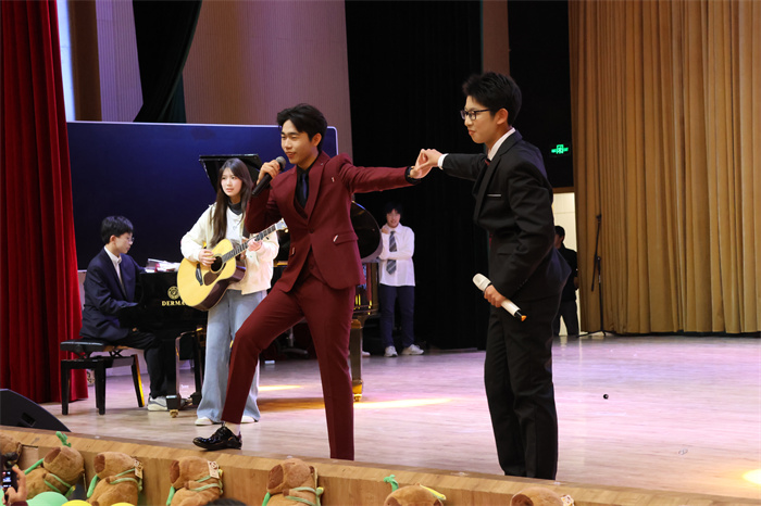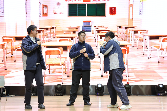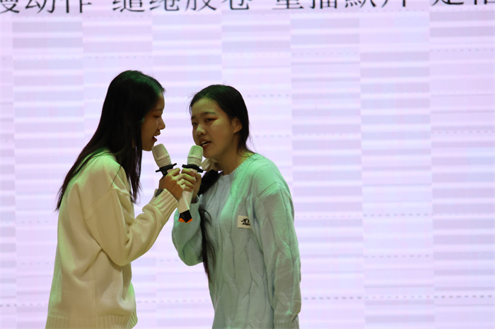 接着,初三(12)班表演的相声《学霸狂想》取材校园生活,内容风趣,包袱不断,引得师生们开怀大笑。