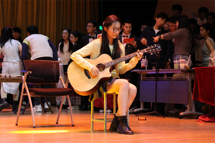 初三(13)班同学表演的歌舞小品《乐剧笑园》融合歌曲、舞蹈、小品等形式,生动活泼,创意无限,别有风味。