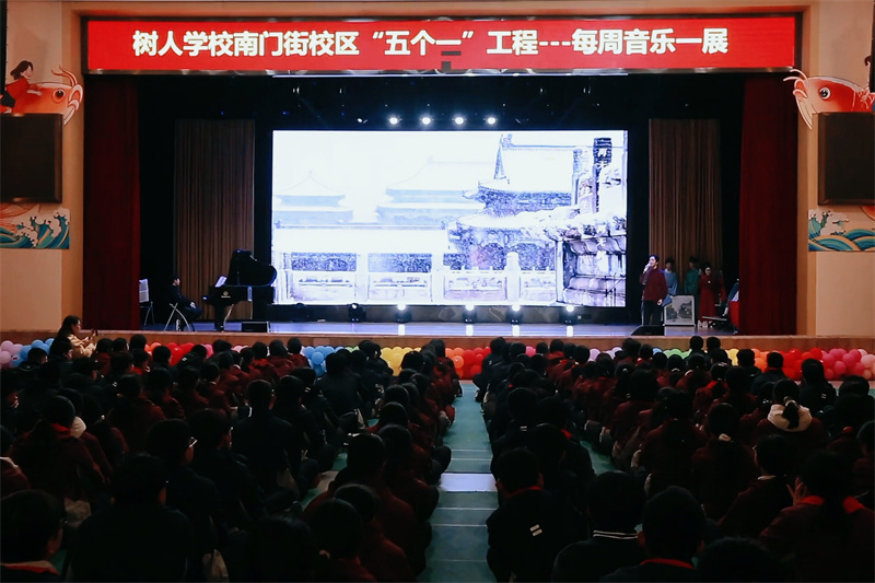 青春是一本多彩的纪念册,每一页都镌刻着成长的印记与梦想的光芒。近日,树人学校南门街校区“五个一工程”之“每周音乐一展雅韵清音”第129场演出在艺术报告厅精彩上演。本次展演由初二(7)班倾力主办,以“青春纪念册”为主题,通过四个寓意深刻的篇章,带领全场观众翻阅了一册由汗水、才华与温情共同谱写的青春华章。