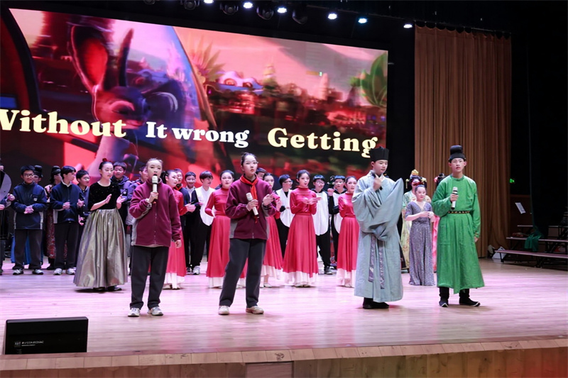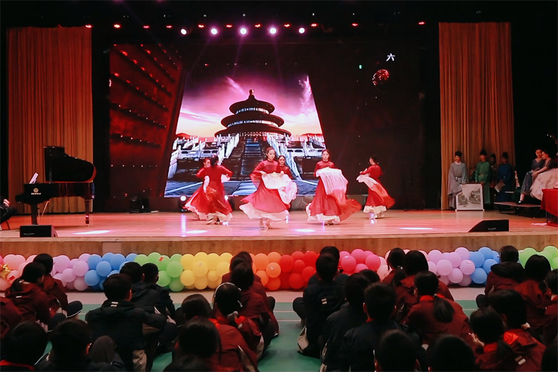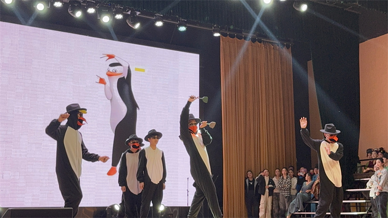 青春纪念册里,少不了那些鲜活跳跃、闪耀个性色彩的篇章。第三篇章“狂想”瞬间点燃全场热情。充满活力的舞蹈串烧《Angel》与《History》,舞步动感十足,洋溢着新时代少年的蓬勃朝气与无限创意。随后,别出心裁的“企鹅版”《水调歌头》更是令人捧腹,同学们以诙谐可爱的演绎方式,致敬经典,展现了他们天马行空的想象力和敢于打破常规的幽默感。这一页,记录的是青春最本真、最洒脱、最富创造力的鲜活模样。