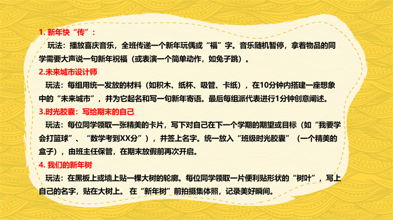 本次迎新活动紧扣“辞旧迎新添喜色 少年逐梦启新程”主题,分为班级联欢与年级特色活动两大板块。在班级联欢环节,各班学生化身“活动策划师”,自主编排歌舞表演、小品相声、乐器演奏等精彩节目,更有“你画我猜”“诗词接龙”等互动游戏穿插其中,让每一位同学都能站上舞台,绽放青春风采。年级特色活动则聚焦团队协作,拔河挑战赛将火热开赛,同学们将在呐喊助威中挥洒汗水,在齐心协力的比拼里凝聚班级力量。
