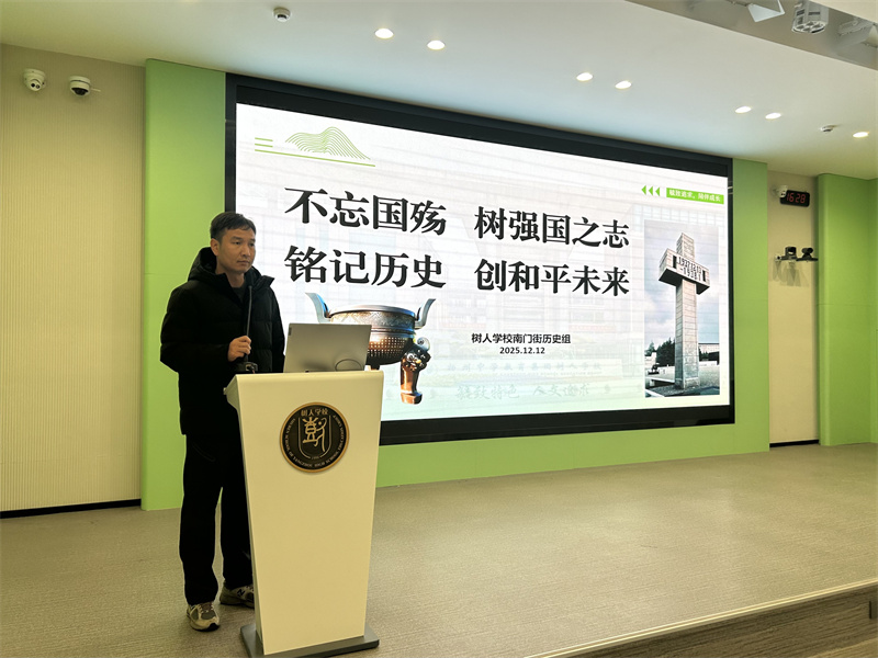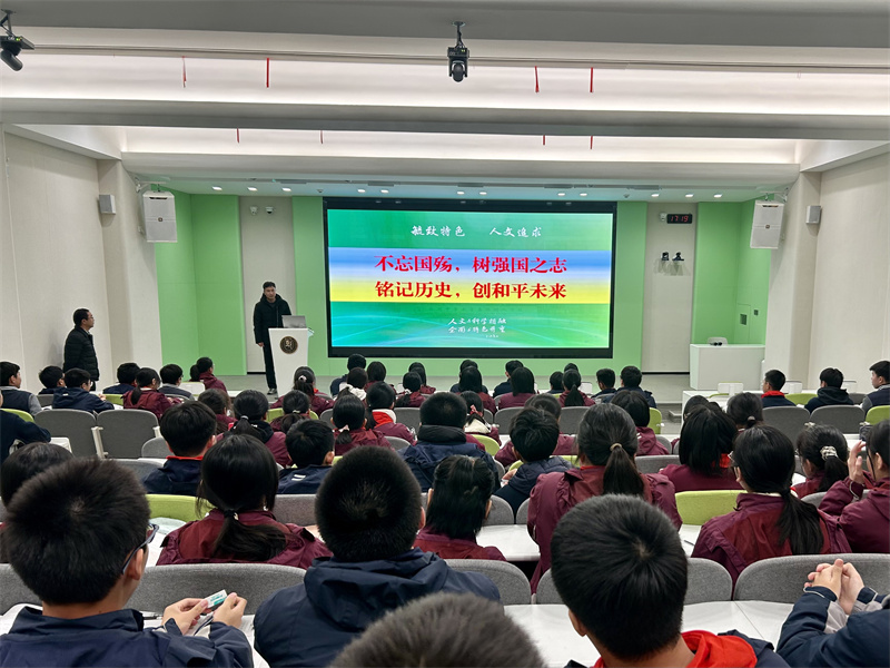 2025年12月12日,在第十二个南京大屠杀死难者国家公祭日来临之际,树人学校南门街校区特邀焦高阁老师为初二年级学生作题为“不忘国殇 树强国志 铭记历史 创和平未来”的专题讲座,引导青年学子铭记民族苦难,厚植家国情怀。