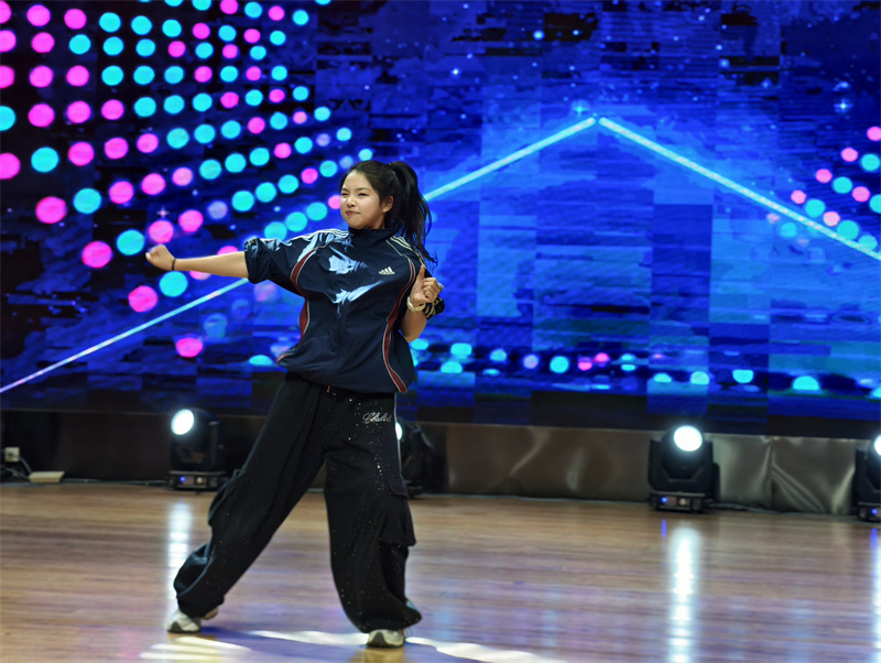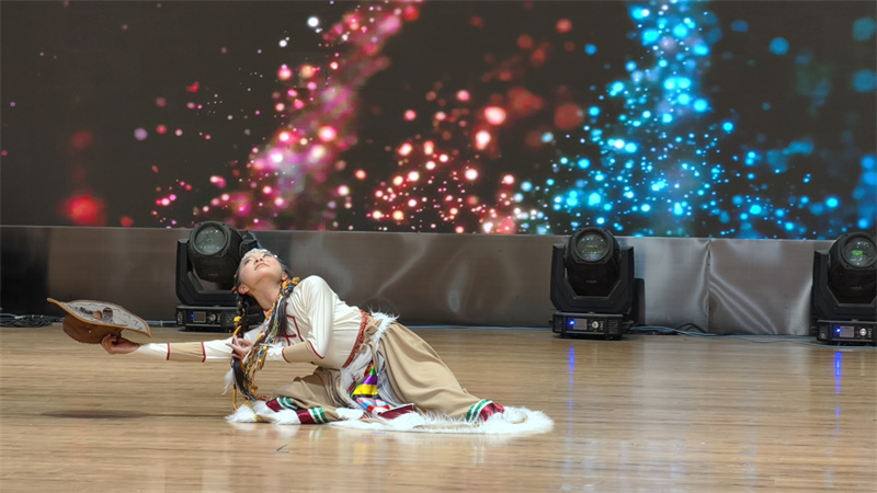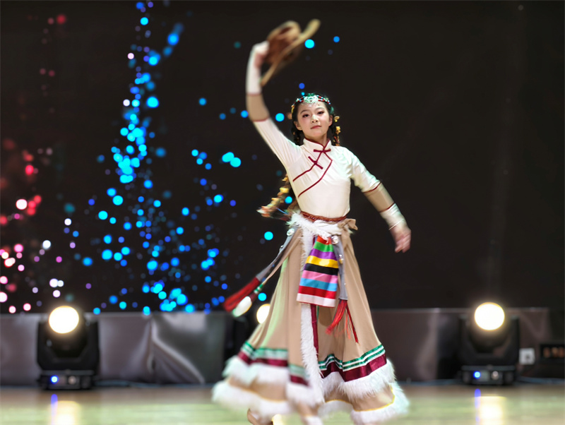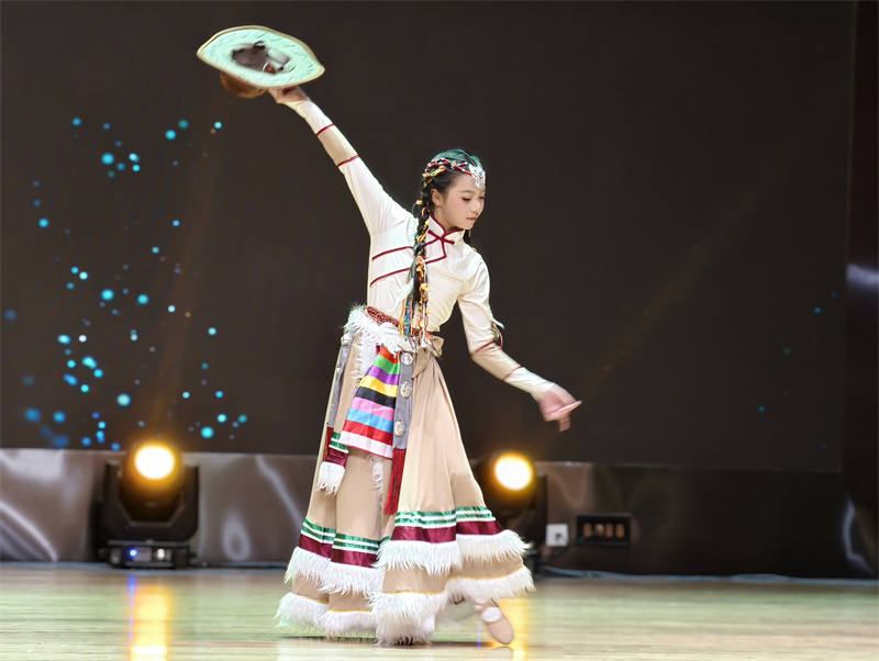 初一(8)班韦瑾柔同学则带来了藏族舞蹈《次仁拉索》。她以舒展的长袖、流畅的舞步,深情演绎了藏族舞蹈的淳朴与热情,高亢的音乐与富于感染力的表现相得益彰,传递出浓郁的民族风情和真挚情感。